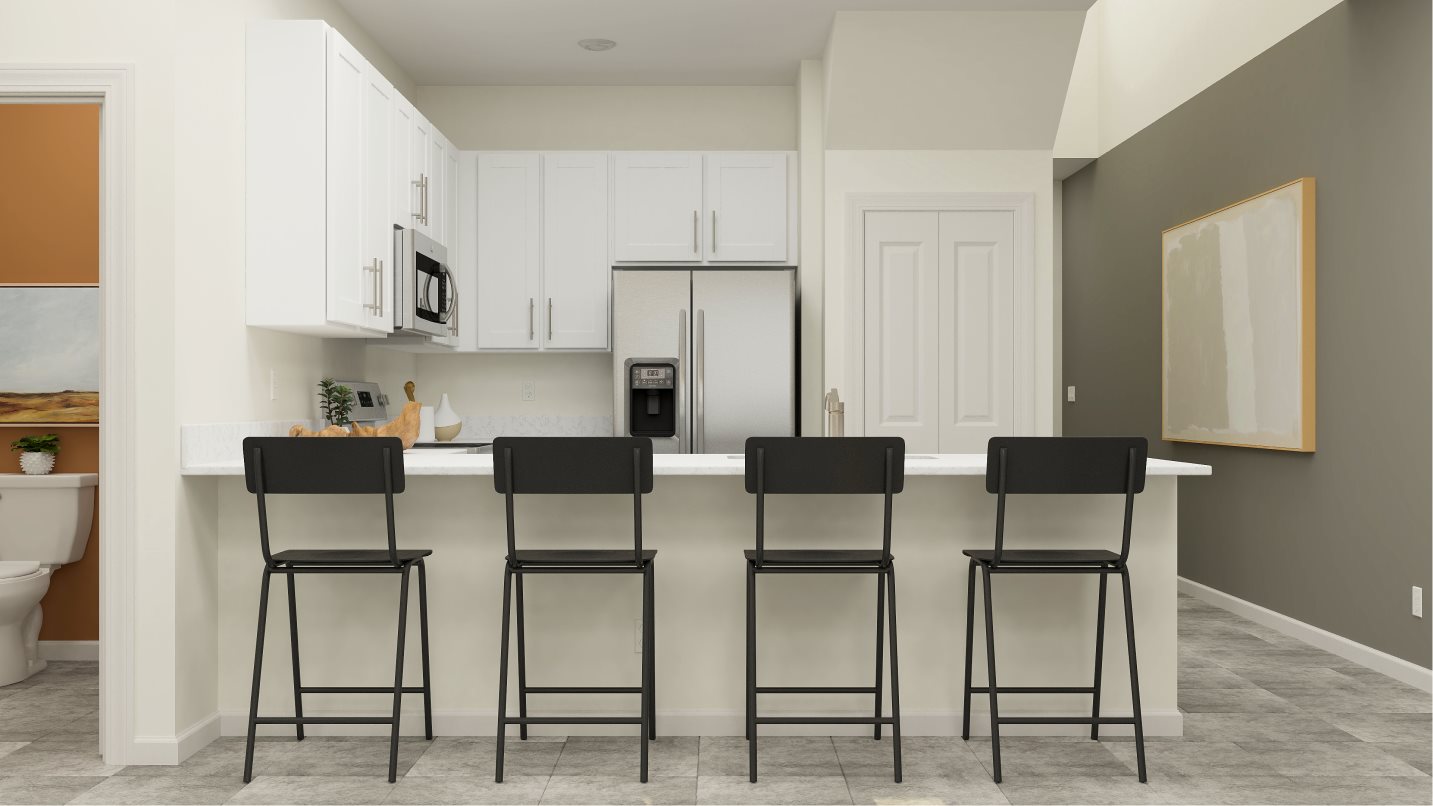 With four bedrooms, the Palermo town estate works well for growing or busy families. The owner’s suite enjoys privacy on the first floor, while the kitchen oversees the family room and covered patio with an open layout. A top-floor loft and study offer flexibility as added common spaces, along with three bedrooms.
