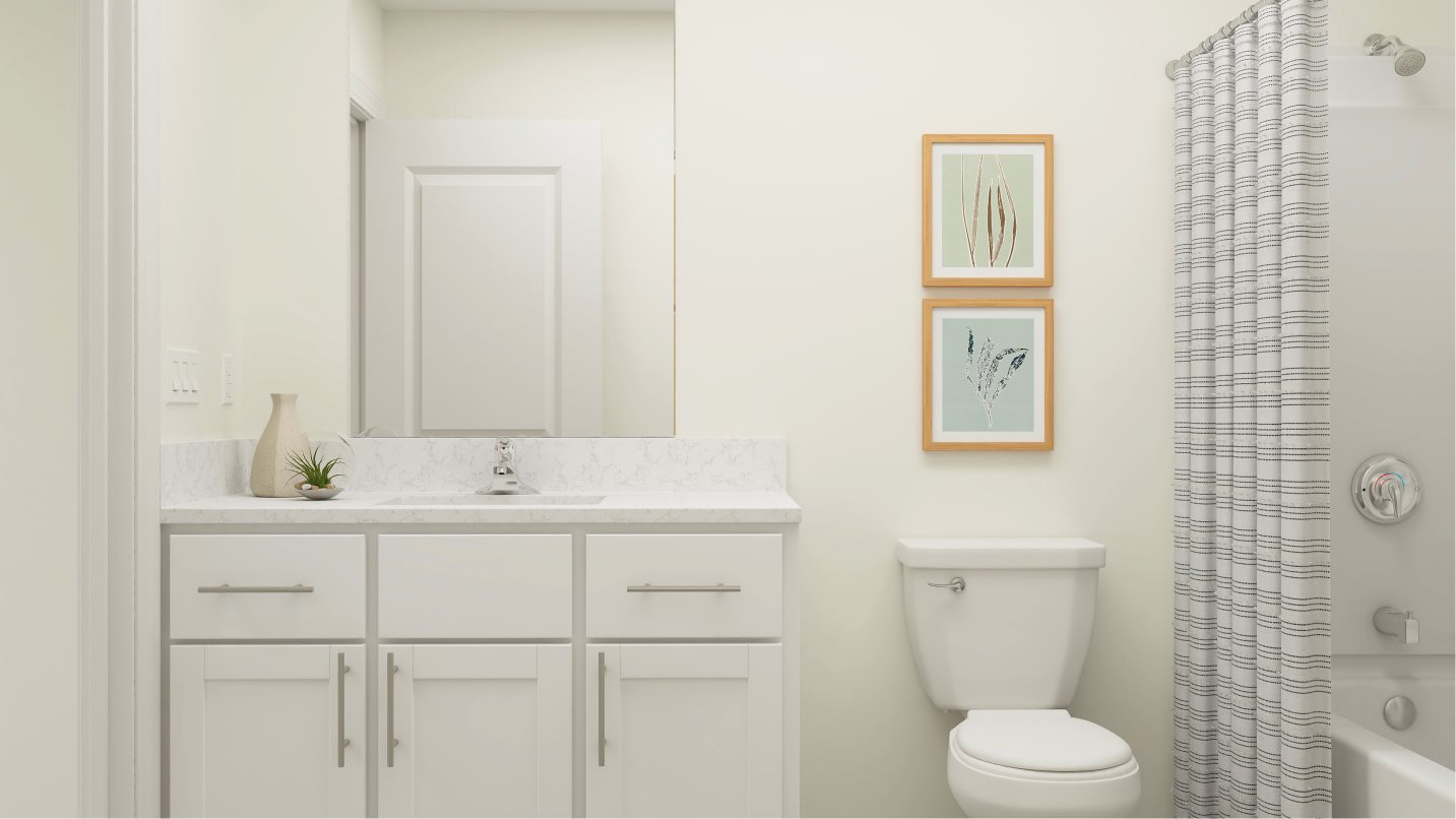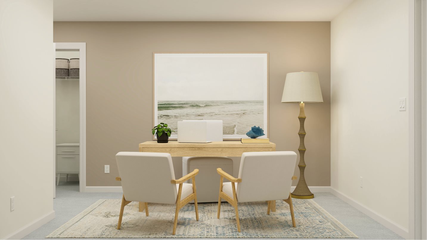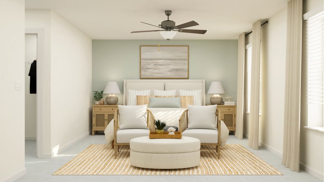 The largest plan in this collection showcases a modern open-concept floorplan on the first floor among the kitchen, family room, dining room and patio. Upstairs, a loft leads to two bedrooms and the comfortable owner’s suite, while a bonus room can become an extra bedroom, study or office space.