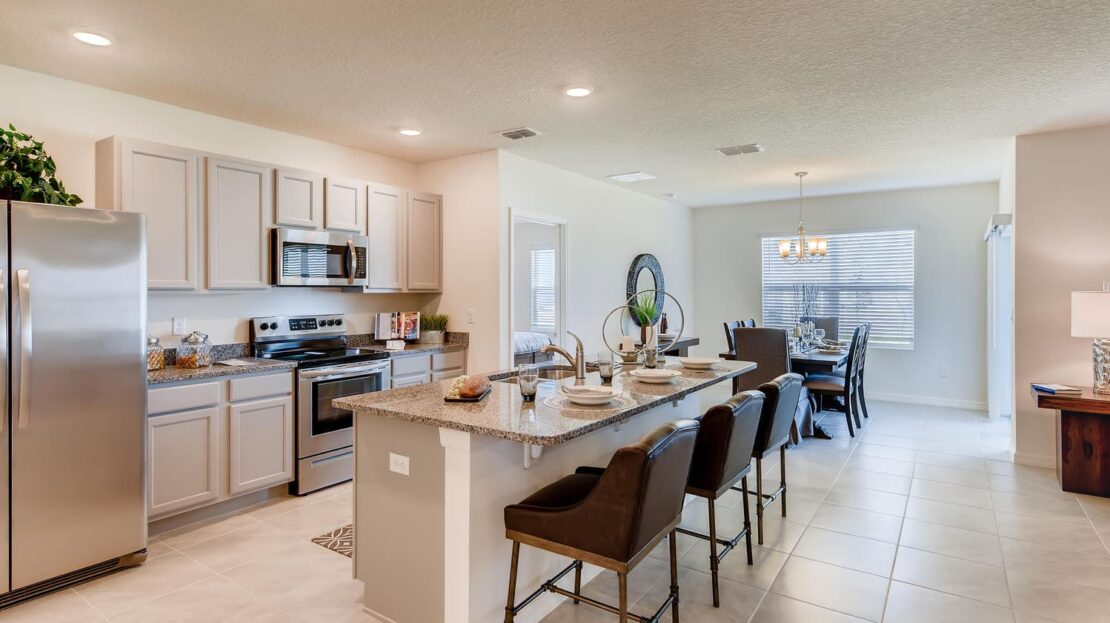 The Aria is one of our one-story floorplans featured in our Concorde in Sanford, Florida. With multiple exteriors to choose from, the Aria is a popular home.Inside this 3-bedroom, 2-bathroom home, you’ll find 1,672 square feet of comfortable living. This all-concrete block constructed, one-story layout optimizes living space with an open concept kitchen overlooking the living area, dining room, and covered lanai.