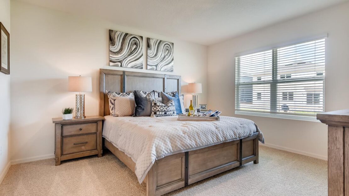 Entertaining is a breeze, as this popular single-family home features a living and dining in the heart of the home, with covered lanai just steps away in your backyard. The spacious kitchen features stainless steel appliances, a convenient island, and walk-in pantry with ample storage. In every bedroom you’ll have carpeted floors and a closet in each room. Whether these rooms become bedrooms, office spaces, or other bonus rooms, there is sure to be comfort.The primary bedroom located in the rear of the home has its own attached bathroom that features a walk-in closet and all the space you need to get ready in the morning. Sharing a sink isn’t a worry with the double vanity. Two additional bedrooms share a second bathroom. This home also features a nice laundry room space with privacy doors and a two-car garage for parking or storage. Like all homes in Concorde, the Aria includes smart home technology, which allows you to control your home anytime with your smart device while near or away.