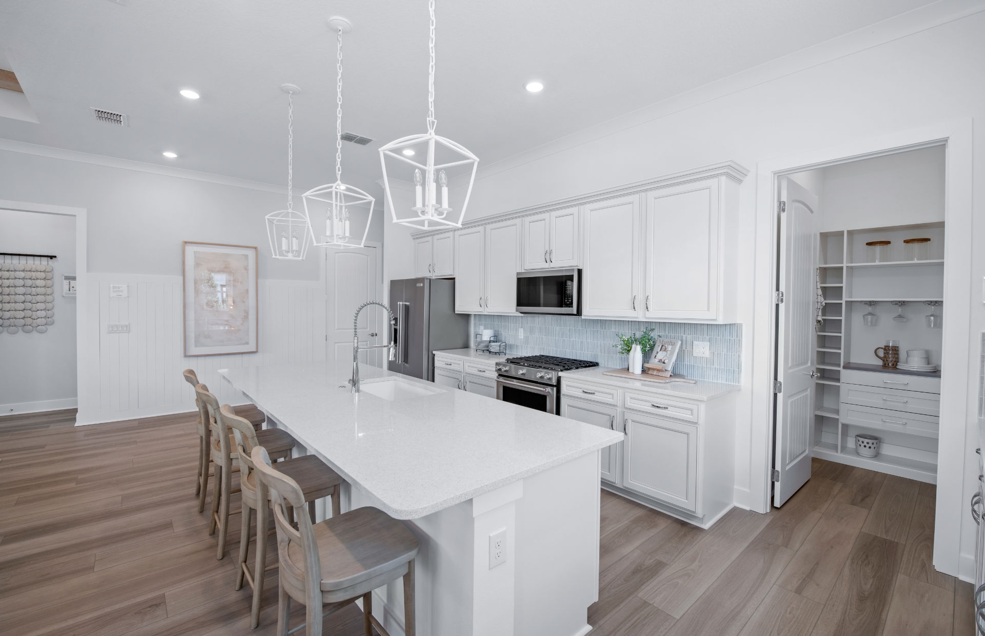 The Palmary features a wide kitchen with tons of counterspace, Aristokraft® Cabinets, and stainless steel Whirlpool® appliances. Enjoy a walk-in pantry with shelving that complements the kitchen.