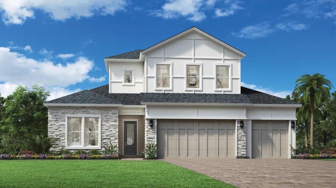 The all new pre-construction floorplan called the Barnwell Elite Transitional, located at Newbrook in St. Augustine, FL built by Toll Brothers. This Barnwell Elite Transitional model has 4 beds, 4 baths, 0 half baths, 3187 sqft, 3 car garage, 2 story and priced from $749000. This style home features Designer Appointed Features.