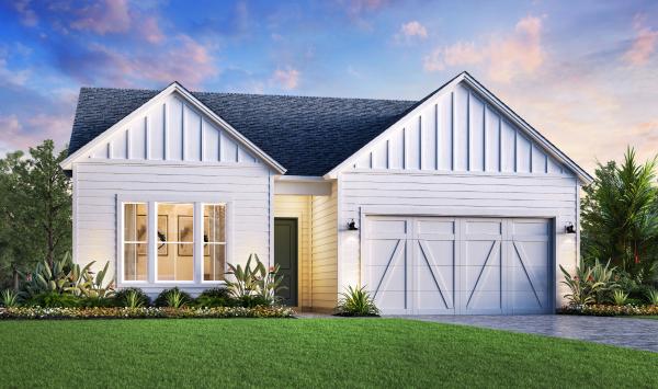 The all new pre-construction floorplan called the Oceana Modern Farmhouse, located at Newbrook in St. Augustine, FL built by Toll Brothers. This Oceana Modern Farmhouse model has 4 beds, 3 baths, 0 half baths, 2115 sqft, 2 car garage, 1 story and priced from $579000. This Single Family style home features Designer Appointed Features.