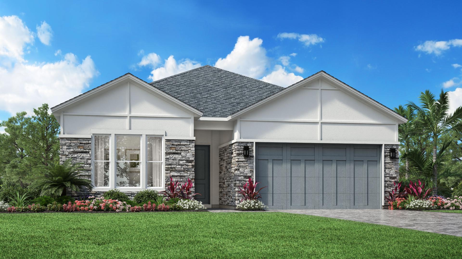The all new pre-construction floorplan called the Oceana Transitional, located at Newbrook in St. Augustine, FL built by Toll Brothers. This Oceana Transitional model has 4 beds, 3 baths, 0 half baths, 2115 sqft, 2 car garage, 1 story and priced from $649000. This Single Family style home features 1st-Floor Primary Bedroom.
