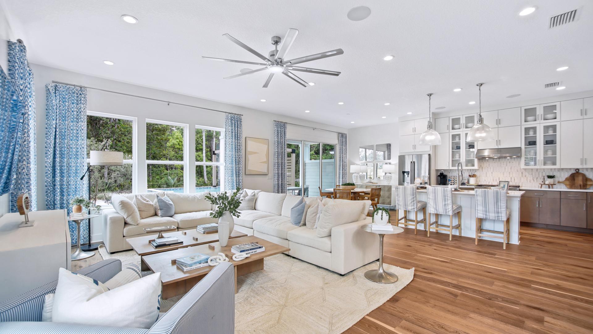 Oversized great room, casual dining, and covered lanai flow naturally from kitchen for seamless entertaining