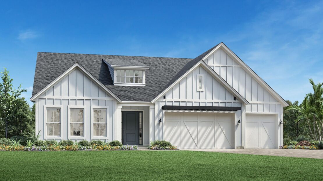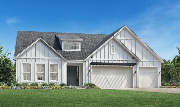 The all new pre-construction floorplan called the Samuel Modern Farmhouse, located at Newbrook in St. Augustine, FL built by Toll Brothers. This Samuel Modern Farmhouse model has 4 beds, 3 baths, 1 half baths, 2904 sqft, 3 car garage, 1 story and priced from $795000. This Single Family style home features 1st-Floor Primary Bedroom.