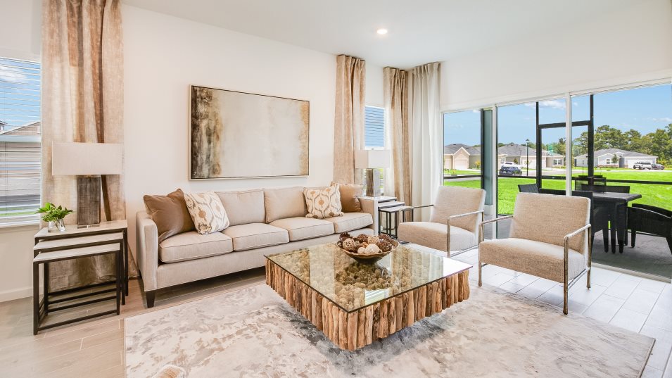 This single-story design features a low-maintenance and open concept layout that merges the kitchen, dining room and living room together for effortless living. Sliding doors lead to a covered lanai for outdoor relaxation. On the other side of the home are three bedrooms to offer residents a peaceful retreat, including the owner’s suite with a spa-inspired bathroom. A two-car garage completes the home.