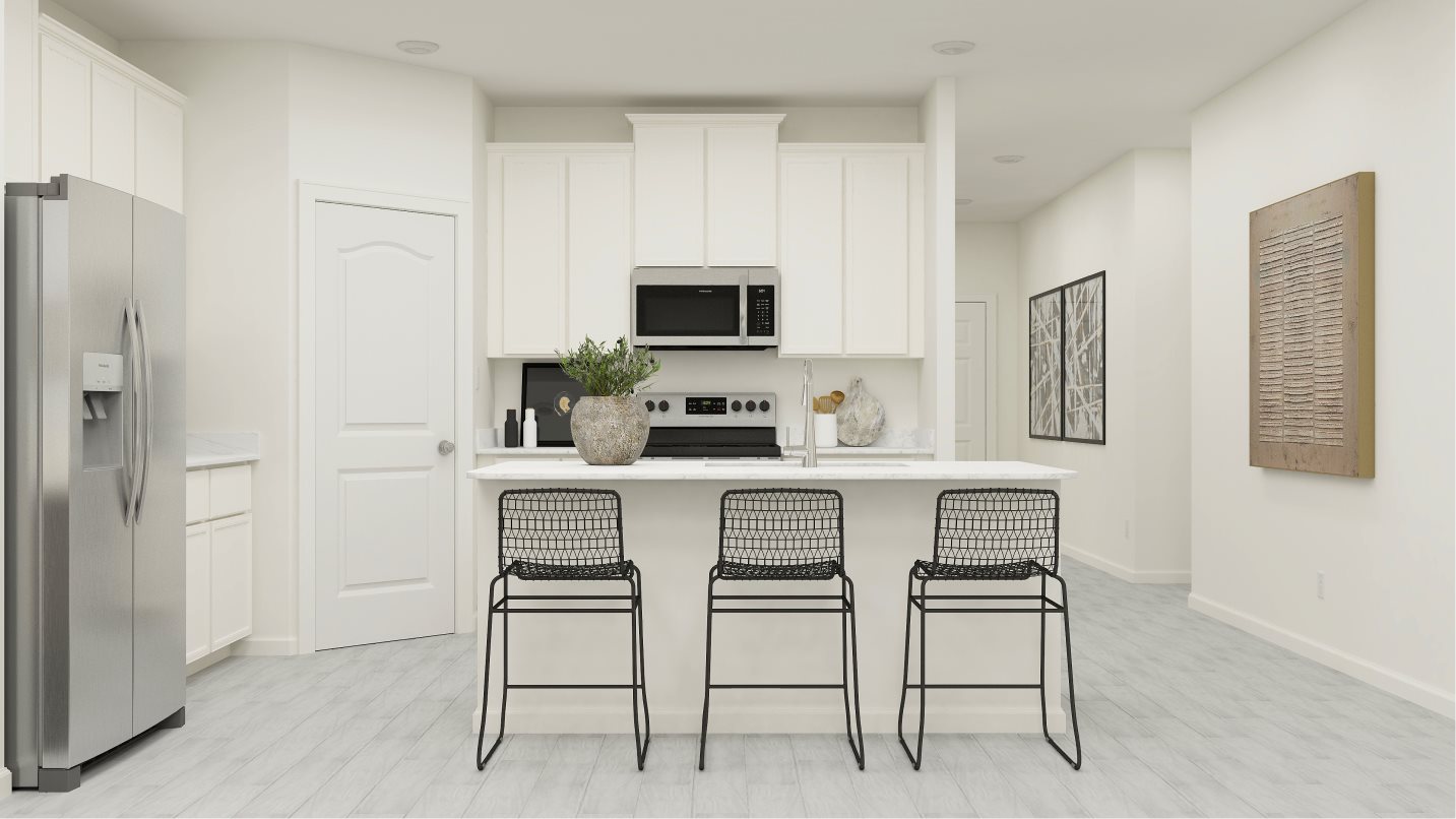 The living room, kitchen and café are situated among a convenient open floorplan that offers seamless transition between spaces, while a covered lanai is ideal for entertaining guests. A versatile flex space can be used as a bonus room for the kids or a home office. Four bedrooms and a two-car garage complete this single-level home.