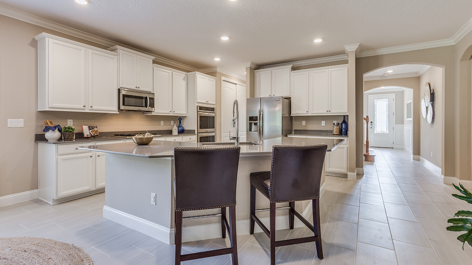 This new two-story home is a family-friendly haven. The first floor showcases an open-plan layout among the kitchen, café and family room, which offers direct access to a covered lanai for outdoor enjoyment. A formal dining room is situated off the foyer. A secondary bedroom and a luxe owner’s suite are located on this floor. Upstairs, a loft provides additional shared-living space, and three secondary bedrooms all feature walk-in closets.