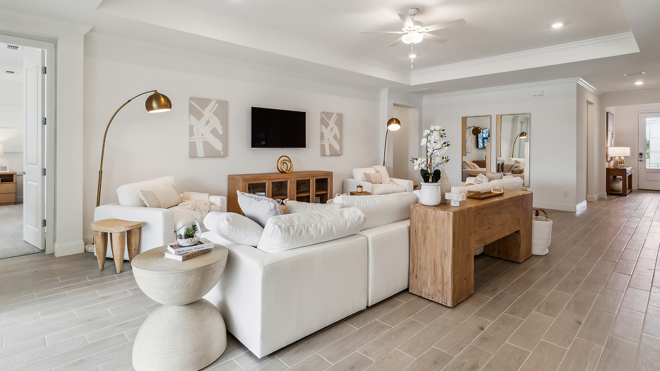 A spacious living room located off the foyer is at the heart of this single-story home, offering access to nearly every other room. Transitioning into the kitchen and café is seamless through a wide-open floorplan, while the dining room and covered lanai offer ample room for entertaining guests. Four bedrooms provide space for the whole family.