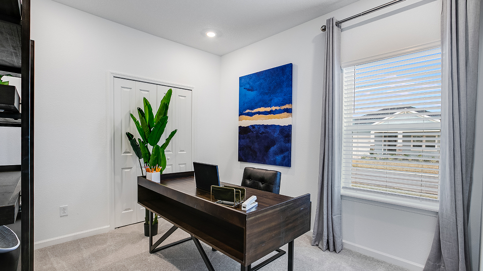 This one-story home combines luxury and convenience, offering an open layout among the kitchen, dining room and family room, with access to a covered lanai for outdoor experiences. A private study, two additional bedrooms and a serene owner’s suite with a walk-in closet are also included.