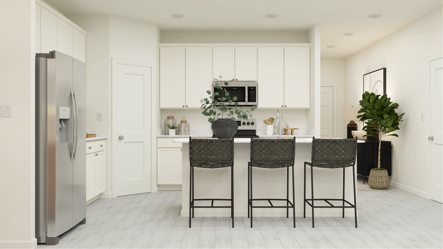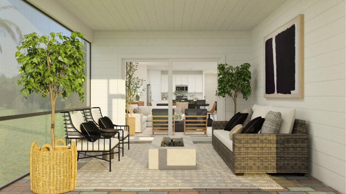 This new single-story home enjoys a low-maintenance design with an inviting open floorplan consisting of the kitchen, café and Great Room, with convenient access to a screened porch for enhanced outdoor living. A versatile study is located off the entry, ideal as a studio or home workspace. Four bedrooms are tucked to the side of the home, including the luxe owner’s suite, which features a spa-inspired bathroom and walk-in closet.