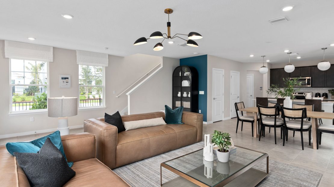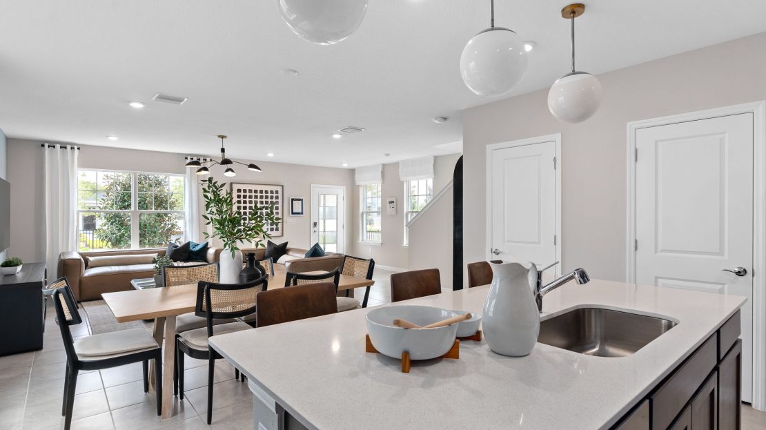 The Benton floorplan boasts a stunning open-concept design flowing seamlessly from the kitchen, cafe, to the gathering room. Upstairs, enjoy privacy with two secondary bedrooms and a spacious owner’s suite featuring a walk-in closet and dual sinks.