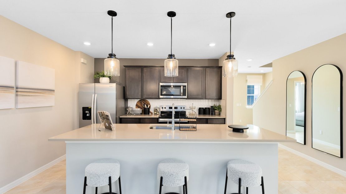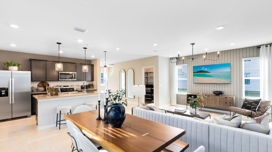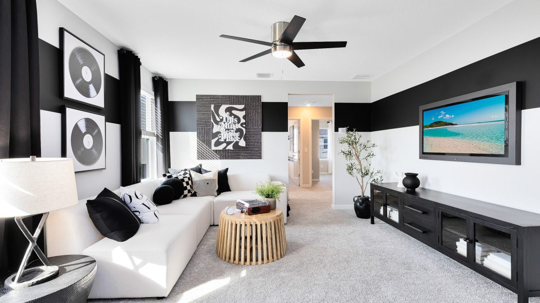The new construction Caden stands out with its spacious gathering room and kitchen on the first floor. The owner’s suite and bedrooms are nestled on the second floor. This plan also features a loft and 2-car garage.