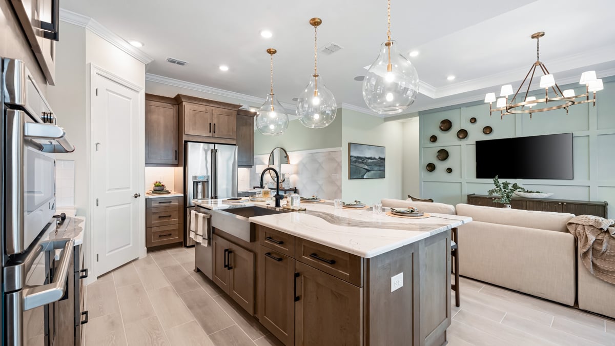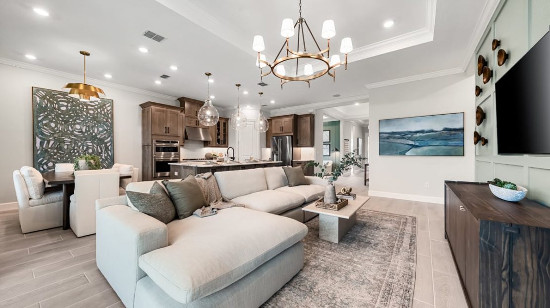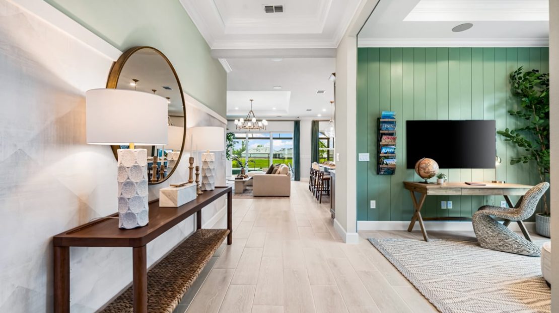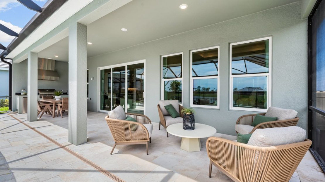 Indulge in open living spaces that blur the line between indoors and out in the Marino floor plan! This 1-story home features 3 bedrooms, 3 bathrooms, a 2-car garage and 2,085 square feet. Head through the porch and into the foyer to find stunning open-concept living spaces. A spacious great room opens to a kitchen, dining area and lanai, an ideal spot to take in unreal Florida sunsets and sunrises. Tucked away, you’ll find a luxurious primary suite you’ll love to unwind in, complete with a walk-in closet and spa-inspired primary bathroom. Head back towards the front of the home to discover two bedrooms, a laundry room and a flex room to transform into a home office, gym, craft room and beyond. Plus, you have options!