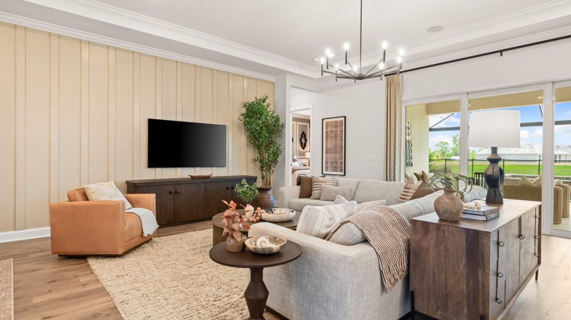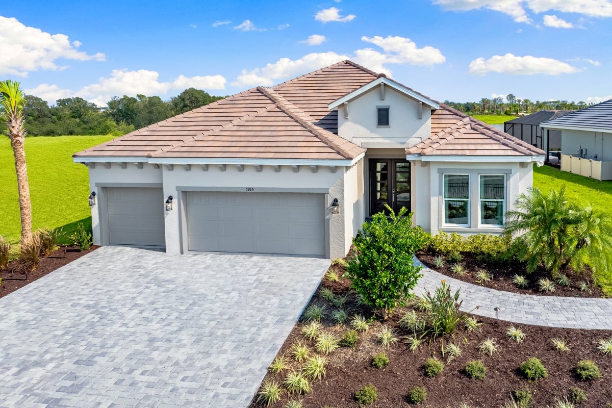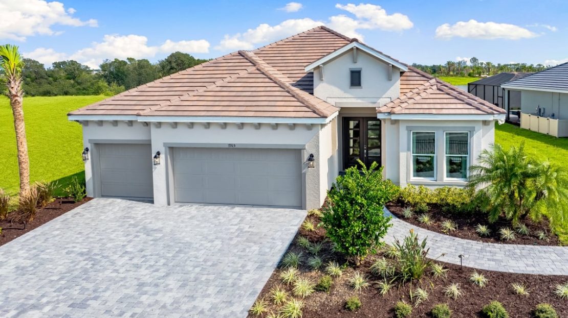 From breezy open spaces to private retreats, the Pallazio II floor plan is designed for effortless luxury. This 1-story home features 3 bedrooms, 3.5 bathrooms, a 3-car garage and 2,833 square feet. Head through the porch and into a sweeping foyer to find beautiful open-concept living spaces. A great room flows into formal and casual dining areas, a modern kitchen and a breathtaking lanai. Gorgeous Florida sunsets, here you come! Tucked away is a luxurious primary suite, complete with a spa-inspired primary bathroom with a walk-in closet, the perfect spot to relax and unwind. Back towards the front of the home, discover two-bedroom suites, each with their own bathroom, plus a powder room, a laundry room and a flex room to customize. Transform this space into anything you wish!