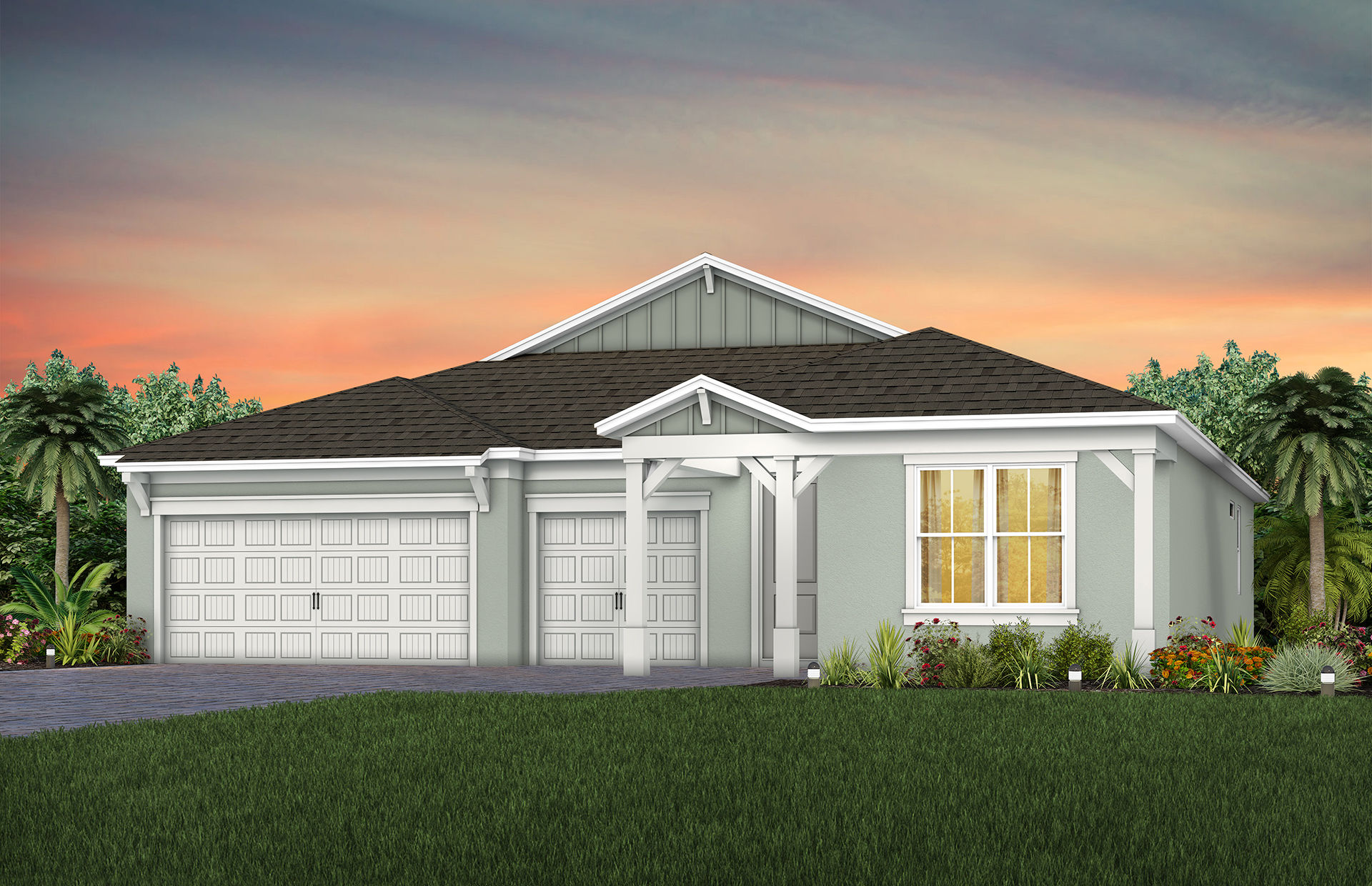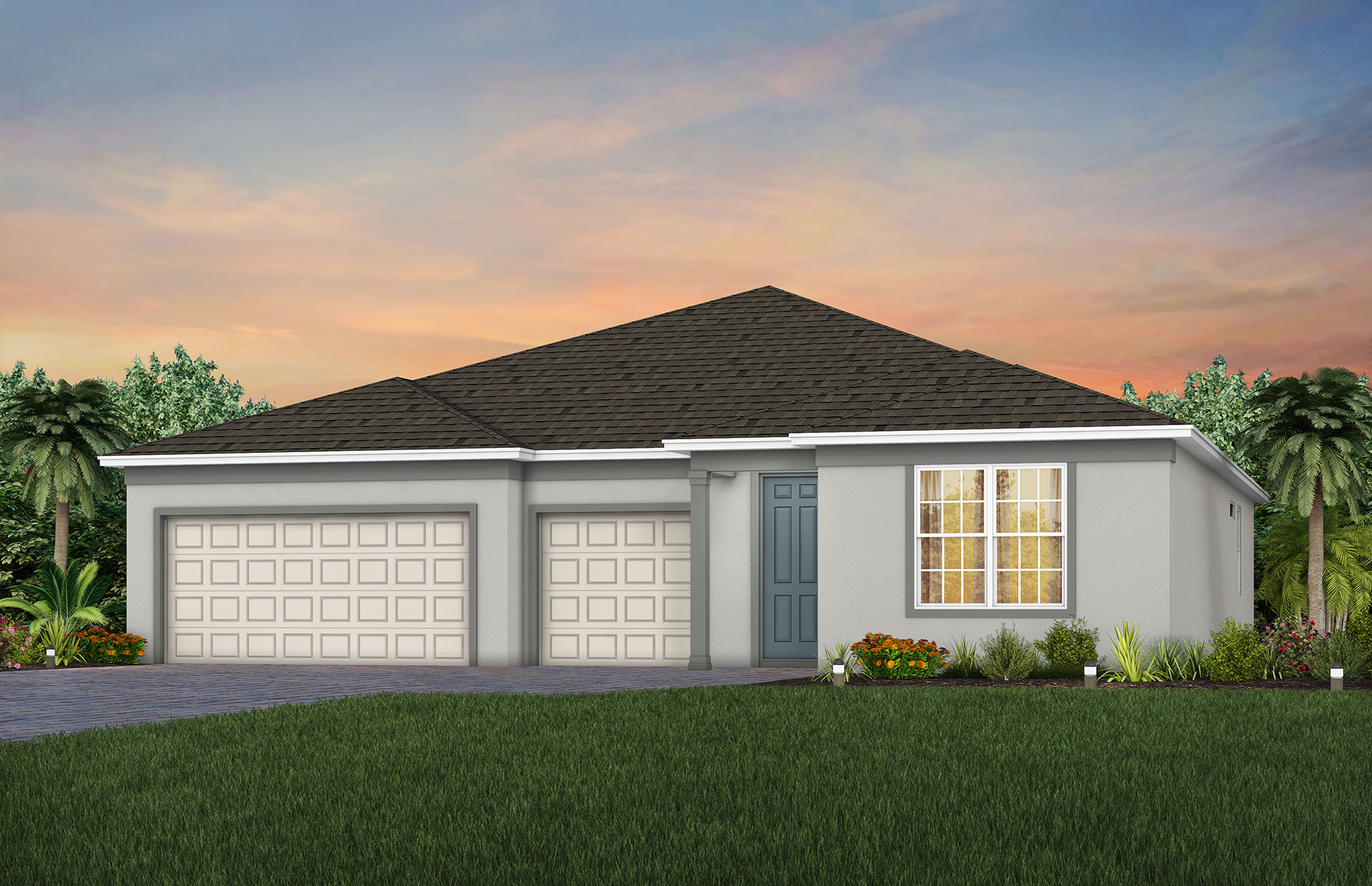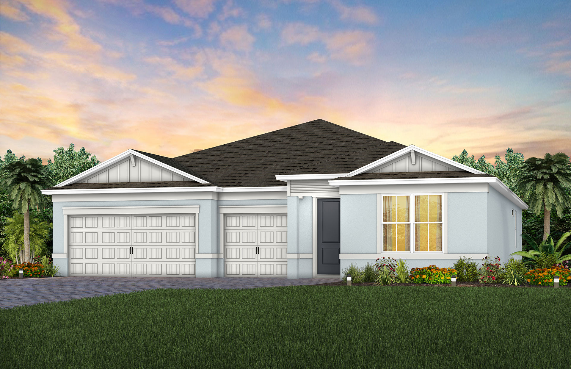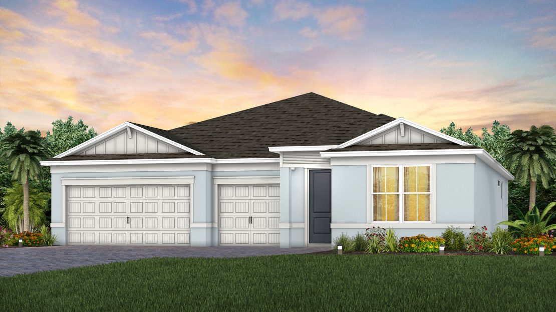The Mahogany home design features a stunning floorplan with a spacious kitchen, café, gathering room, plus a 3-car garage. Create the perfect in-home office or personal gym in your spacious flex room. Relax under your covered lanai ideal for outdoor entertaining.