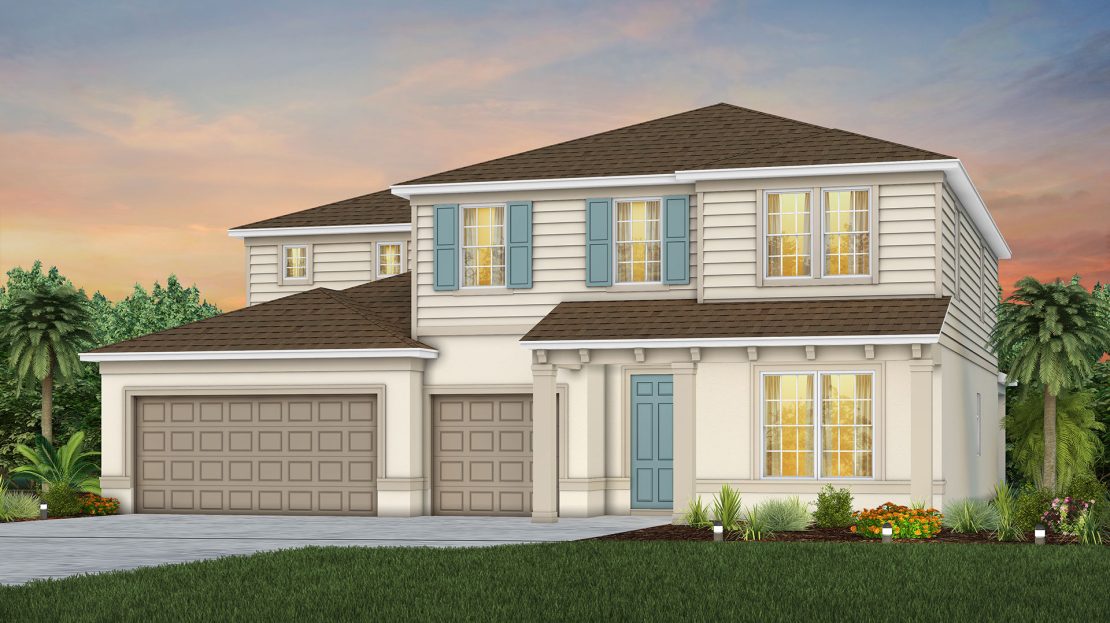 Oakhurst Model at The Landings at Live Oak Lake in St. Cloud, Florida built by Pulte. Floorplan with 4-5 beds, 2.5-5 baths, 3820 sqft priced from $593990
