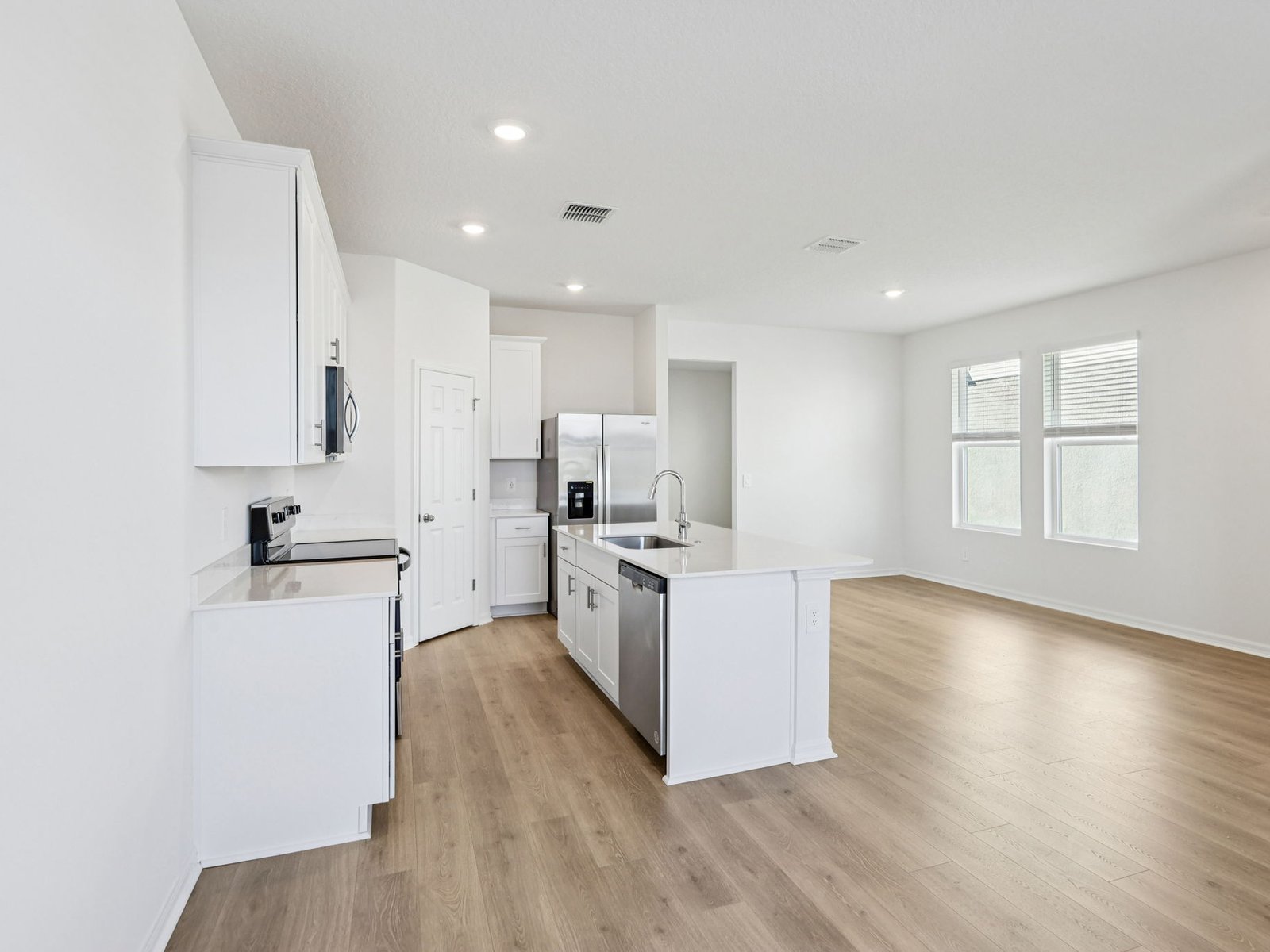Enjoy the functionality of the open designer curated kitchen, spacious great room and dining area. Flex space can be configured as a home office, hobby space, or however you choose to use it.