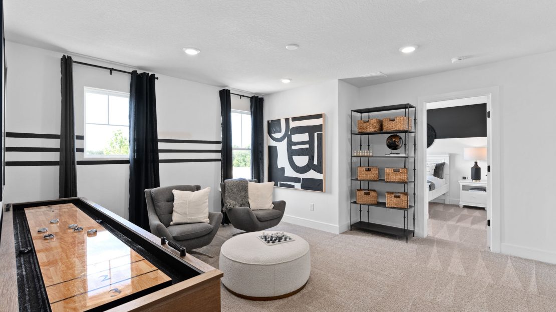 The Tower floor plan is known for its spacious gathering room, which connects to the foyer and open kitchen, making this home perfect for entertaining. The second story offers a second living space giving kids an area to run around and play.