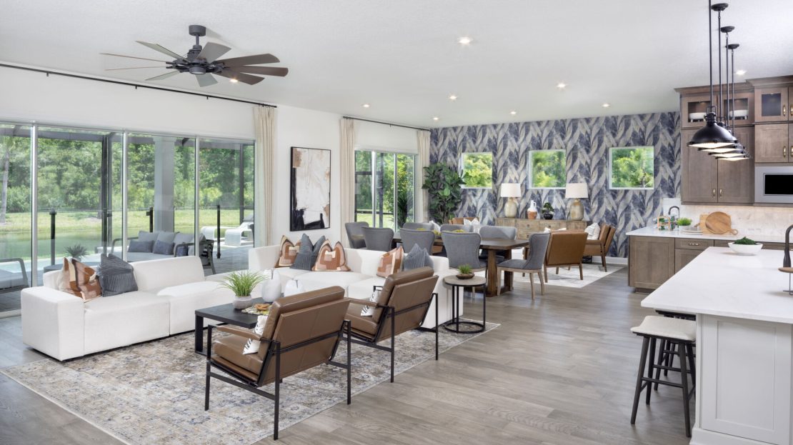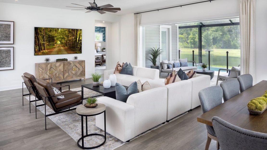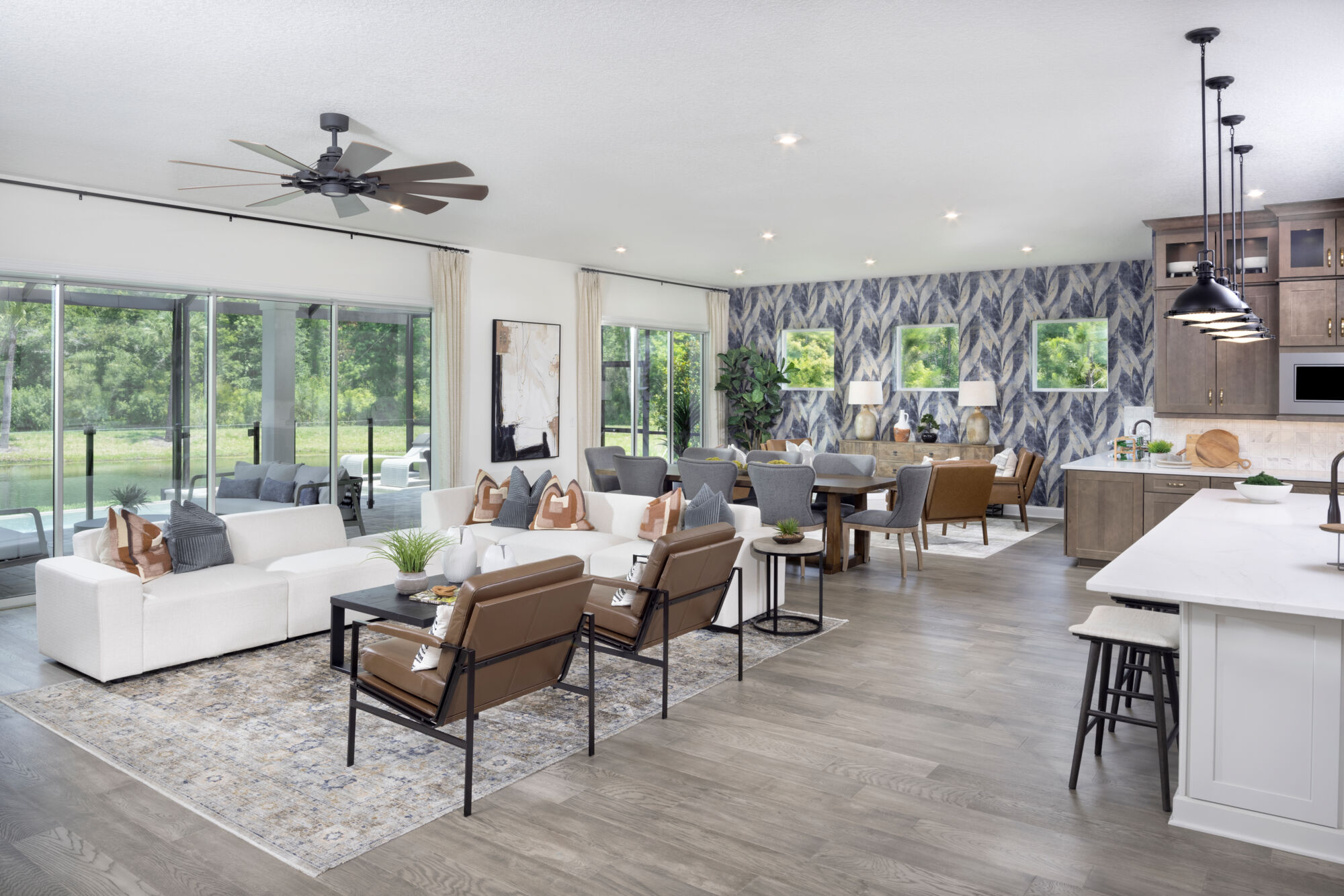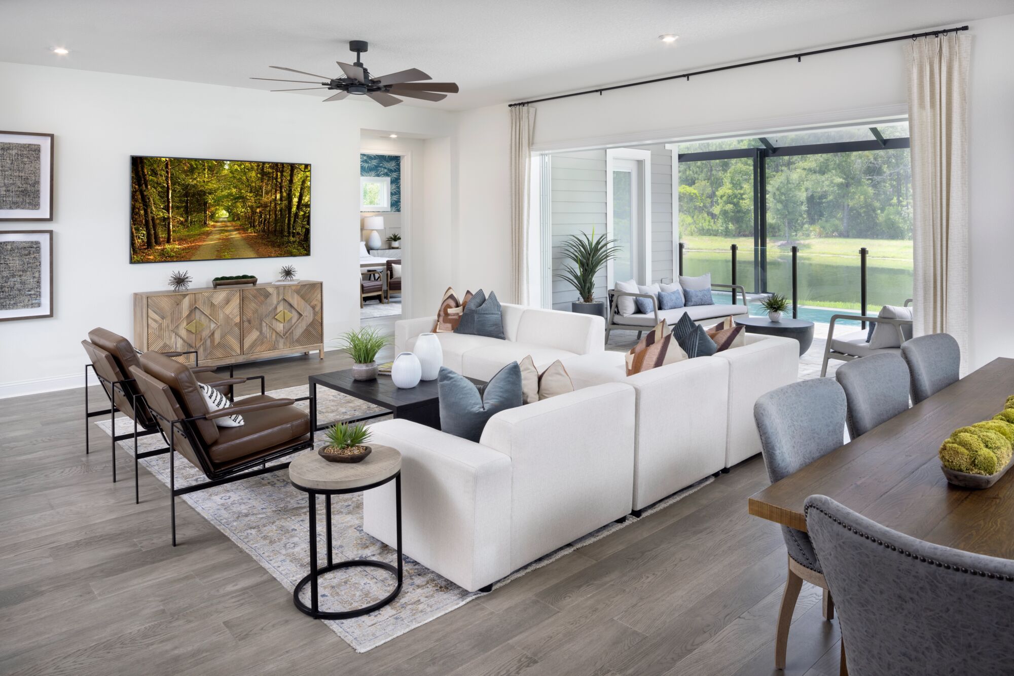 The Topaz is a beautifully designed 4-bedroom, 3.5-bath home with 3,368 square feet of living space and a 3-car garage. This floorplan strikes the perfect balance between privacy and togetherness, featuring spacious communal areas alongside cozy retreats. As you enter, the foyer opens into an airy Great Room that flows seamlessly into the dining area, making it an ideal space for family gatherings and entertaining. Natural light pours in through the extended lanai, brightening the entire living area. The chef’s kitchen, with its central island overlooking the living space, also includes a morning kitchen and walk-in pantry. The owner’s suite, located at the rear of the home, offers ultimate comfort and seclusion, while a private hall leads to two additional bedrooms. A fourth bedroom, with its own entrance from the garage, provides added privacy. Near the front hallway, a versatile flex room can easily be transformed into a wellness studio or remote office. To make this home truly yours, you can choose from several upgrade options, like a 16-foot hideaway or sliding glass doors, and various shower or tub choices for the bathrooms.