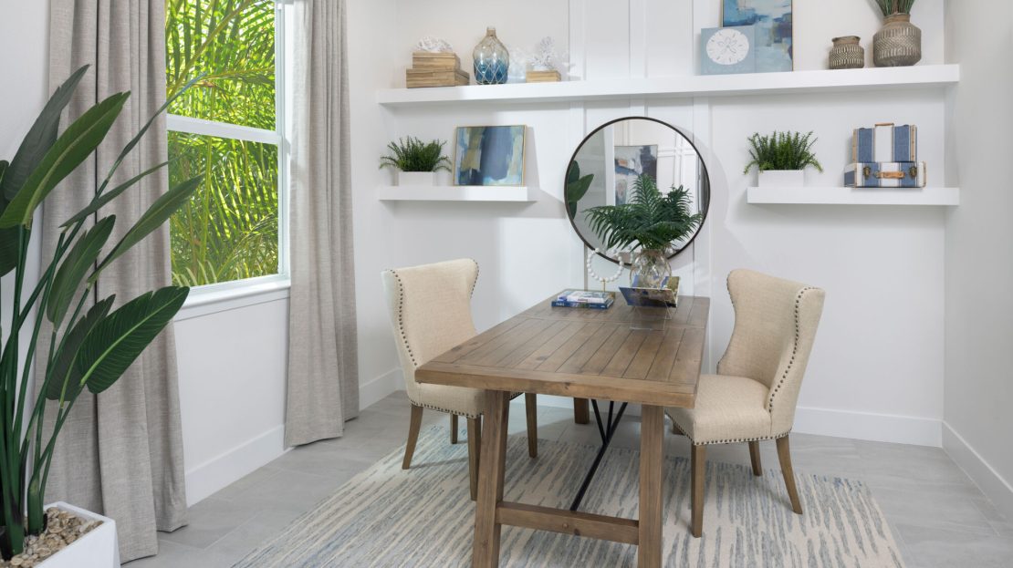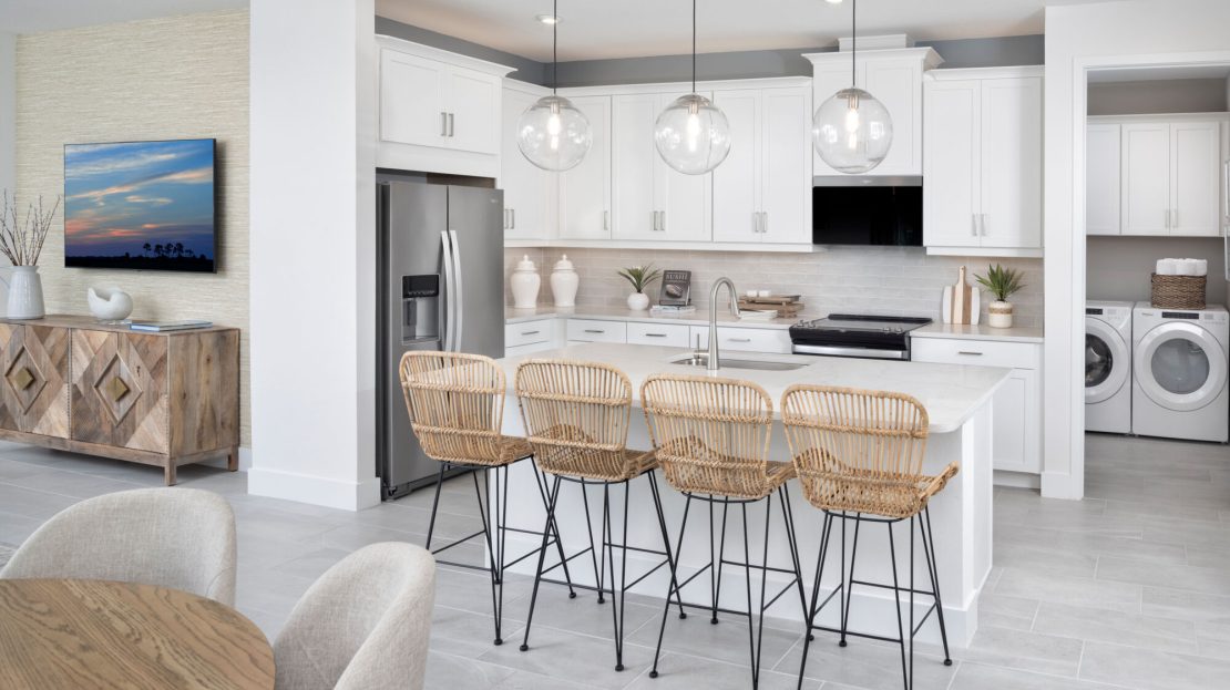 Named Best Overall by the Suncoast Builders Association Parade of Homes, the 1,574 sq. ft. Maya paired villa has an open-concept kitchen that is the center of the layout next to the dining area and Great Room. The laundry room is also adjacent, offering maximum convenience. The covered lanai offers outdoor living space for fresh-air dining, gathering or just relaxing – taking advantage of the year-round amazing Florida weather. There’s also a flex room right off the foyer, offering another versatile living space. Tucked at the back of the home for added privacy is the owner’s suite with a relaxing bath and large walk-in closet.