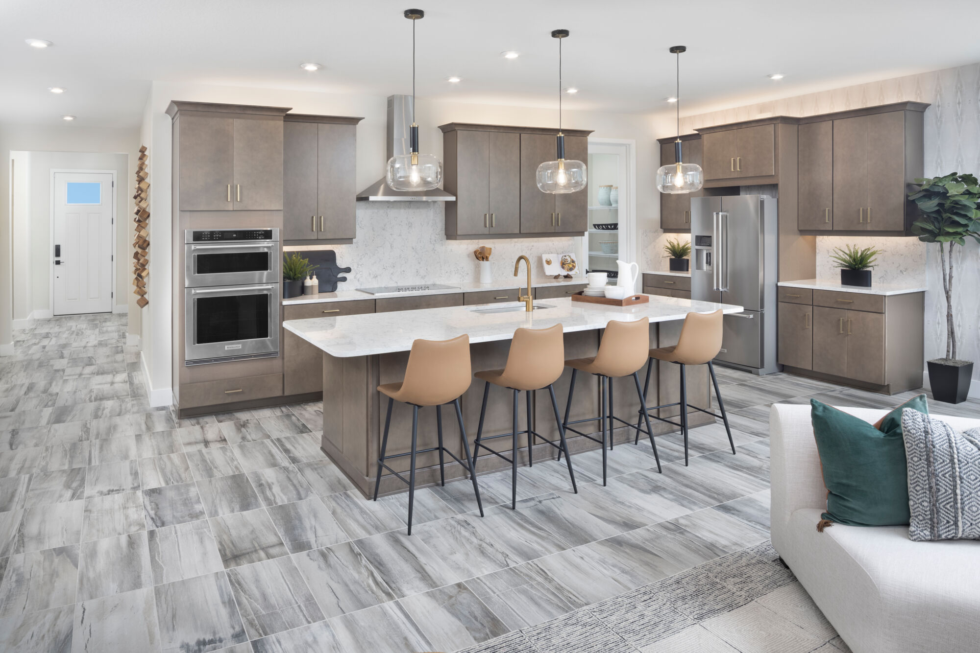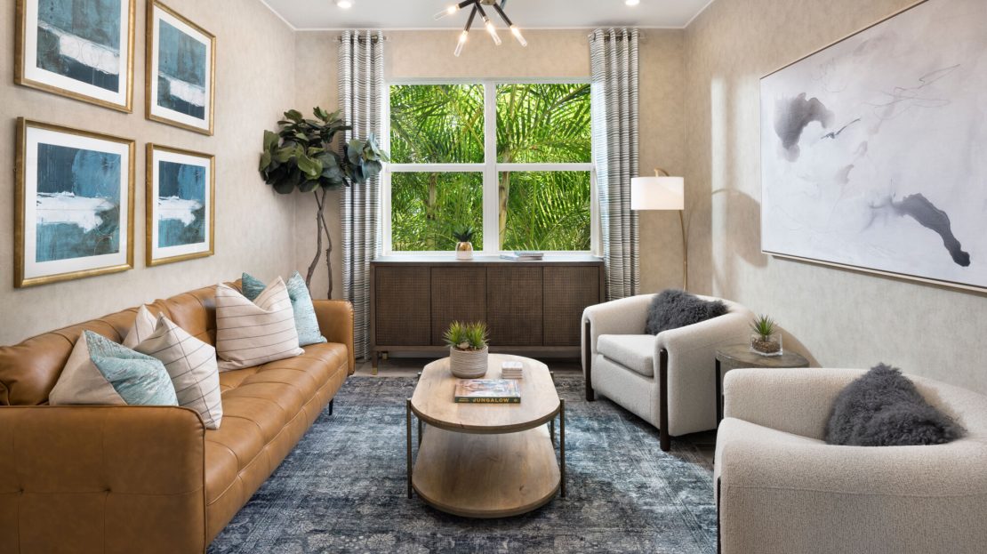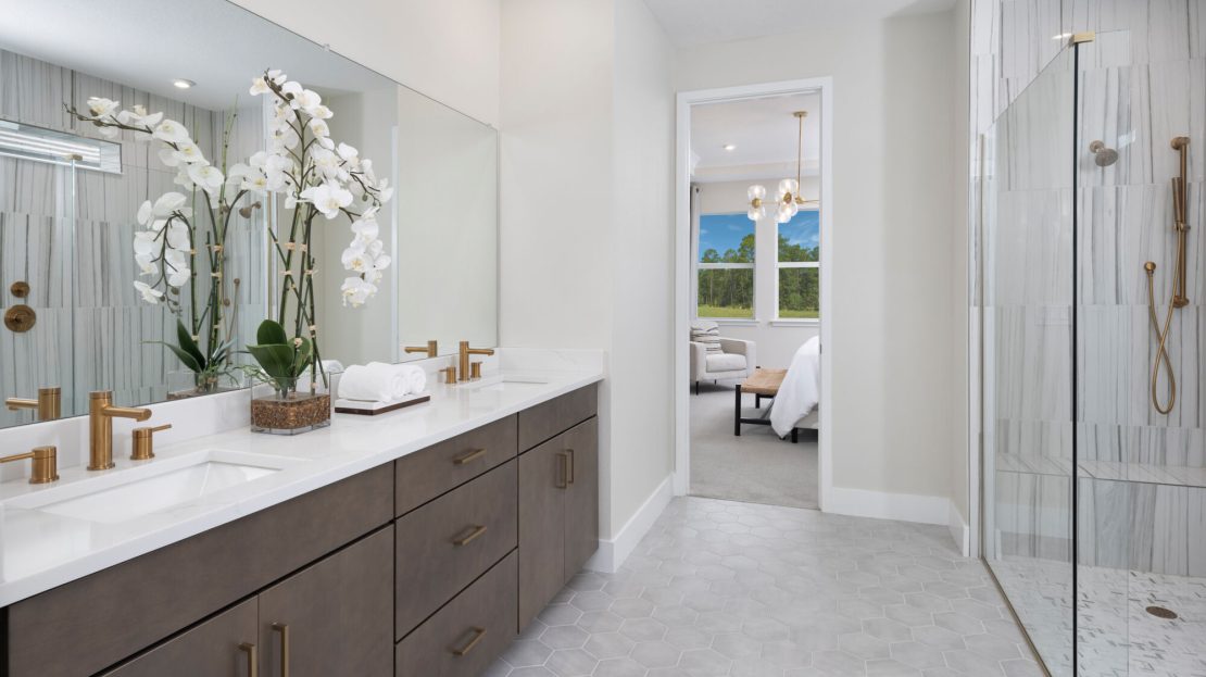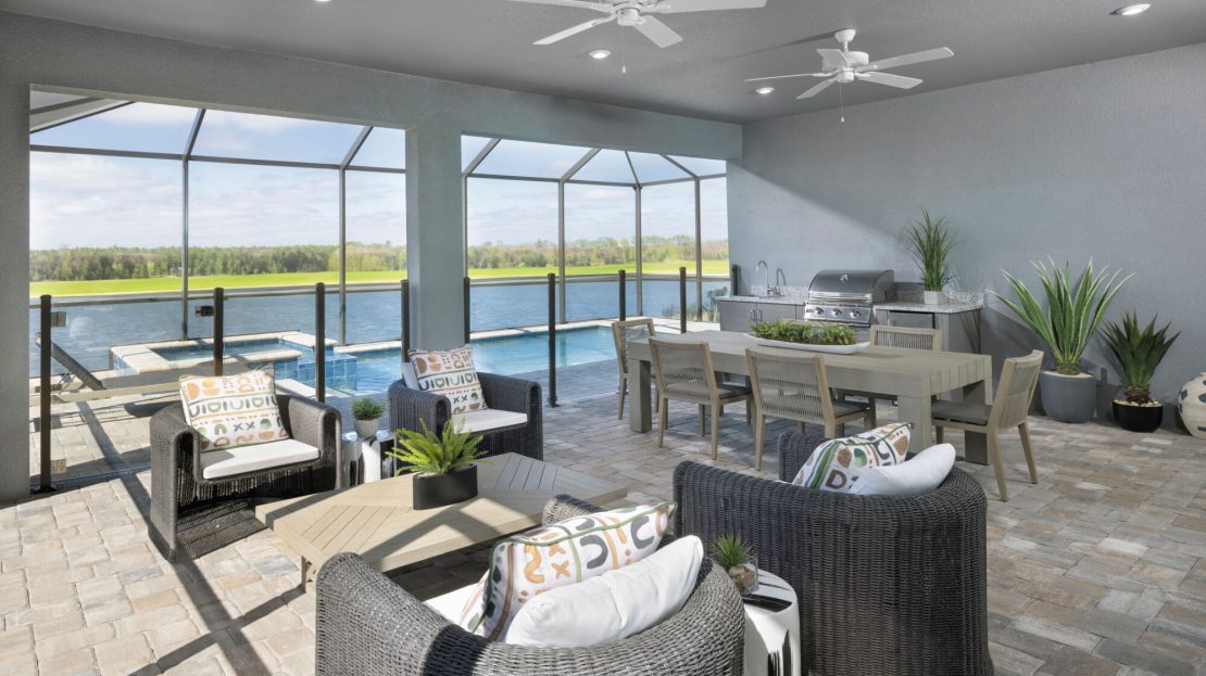 The Terra Rosa single-family home offers an impressive 2,478 sq. ft. of living space and elegant style. This home design is exceptional for everyday living or your most memorable gatherings. The gorgeous, open-concept kitchen, Great Room and dining area are full of natural light from beautiful windows and a 12-foot multi-sliding glass door leads out to the covered lanai. There’s a flex room to the side, offering more living space for you to use as you please. Bedroom 3 is tucked away with an adjacent full bath, while bedroom 2 could double as a guest suite with its own private, full bath and a walk-in closet. The owner’s suite offers expansive space with a luxurious, spa-inspired bath and large walk-in closet.