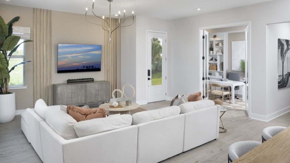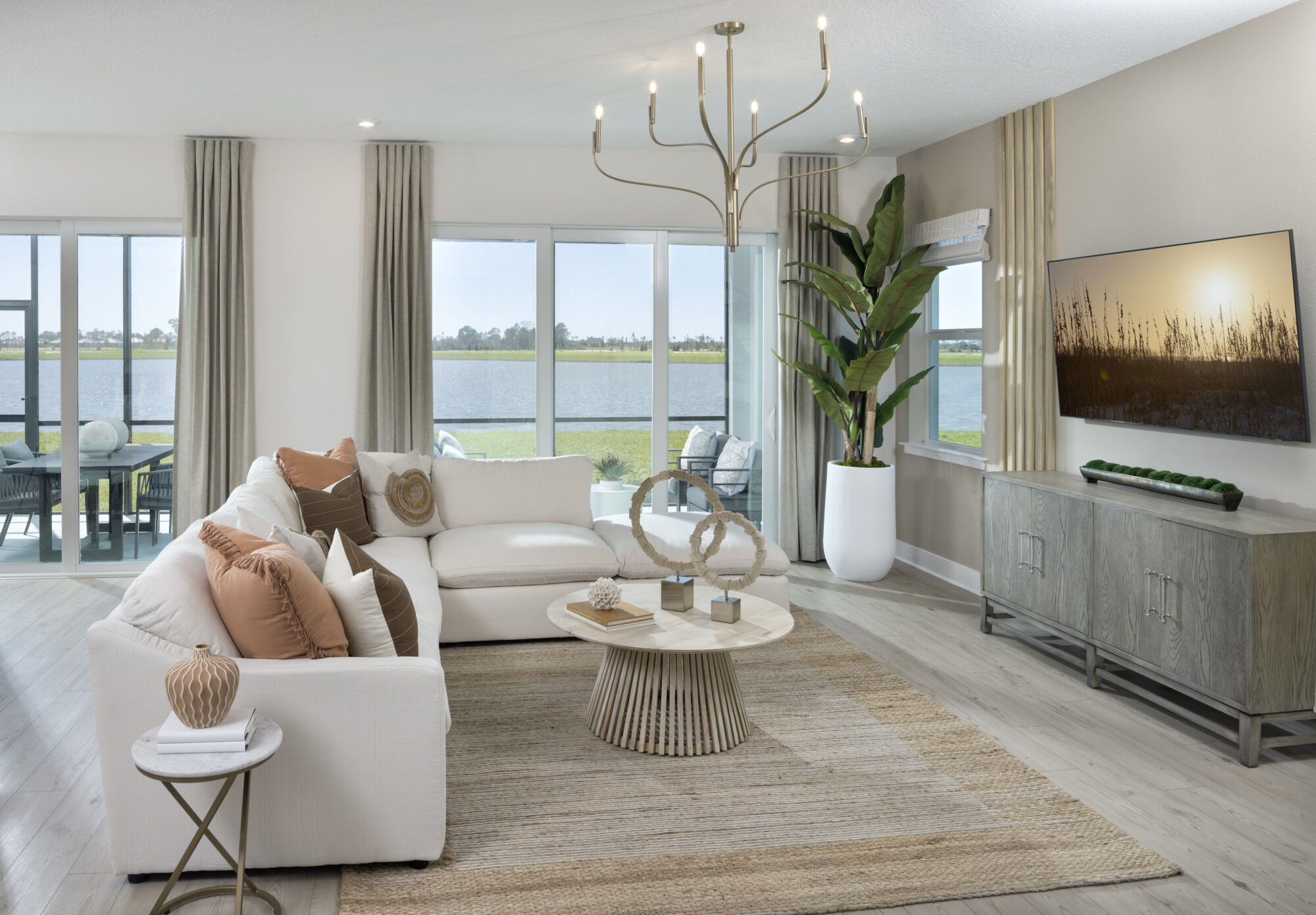 The Acacia is a thoughtfully designed first-floor condo that effortlessly combines style, functionality, and spacious living. With a generous 1,904 sq. ft. of living space, this home is ideal for both entertaining and everyday relaxation. The open-concept kitchen, dining area, and Great Room flow seamlessly into one another for an inviting atmosphere. Two glass sliding doors lead out to the expansive, covered lanai, offering a peaceful retreat for outdoor dining, relaxation, or enjoying the fresh air year-round. The owner’s suite is a true sanctuary, offering a spacious and serene retreat and relaxing bath. The secondary bedroom is perfect for guests or family members, with access to an adjacent full bath. In addition, the Acacia includes a versatile flex room that can be adapted to suit your needs, whether you use it as a home office, den, or hobby room, this space offers endless possibilities to fit your lifestyle.