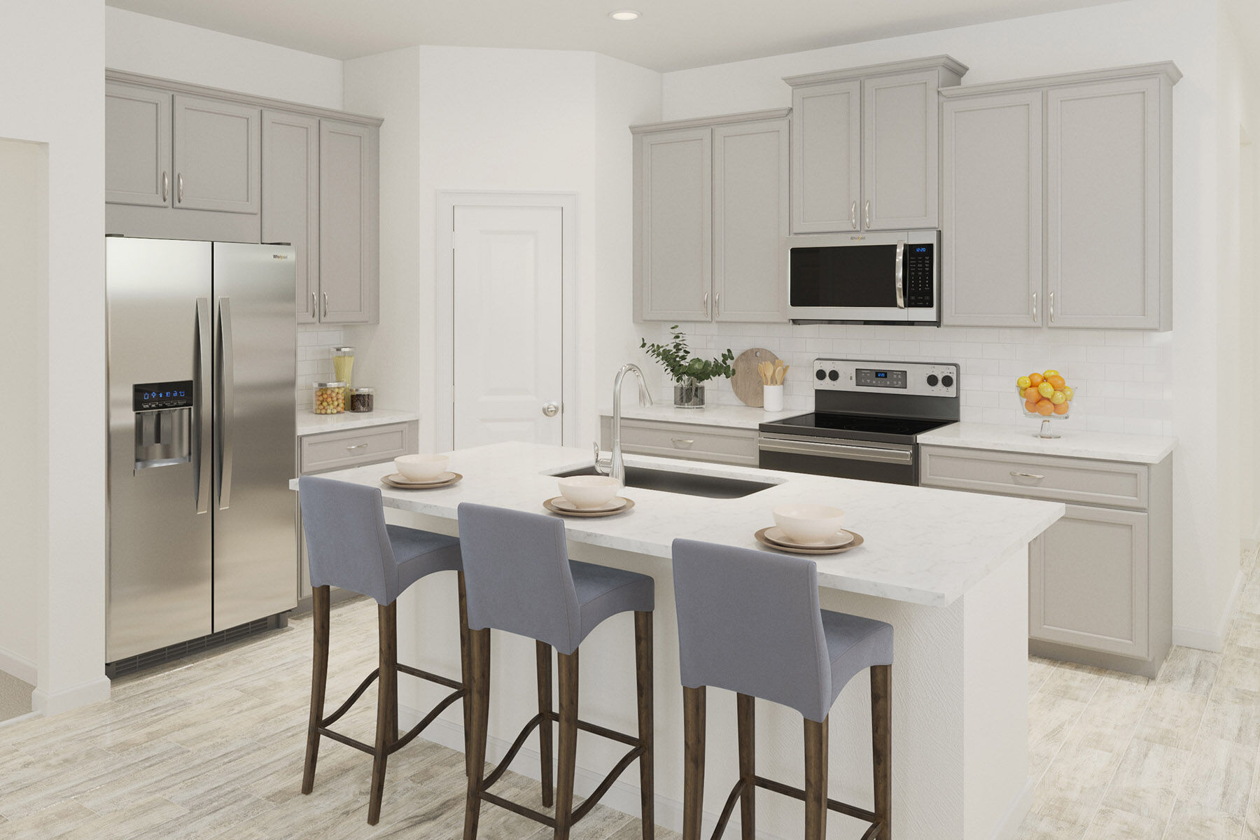 The 1,601 sq. ft. Greenway floorplan offers plenty of room to live, with modern and inspiring style to spare. The large, open-concept kitchen with breakfast bar connects to the dining room and Great Room for one continuous and comfortable living space. The covered lanai encourages you to take the fun outside, as well. A large flex room adjacent to the 2nd bedroom provides even more space for entertainment, study or remote work. The owner’s suite has a luxurious private bath and walk-in closet.