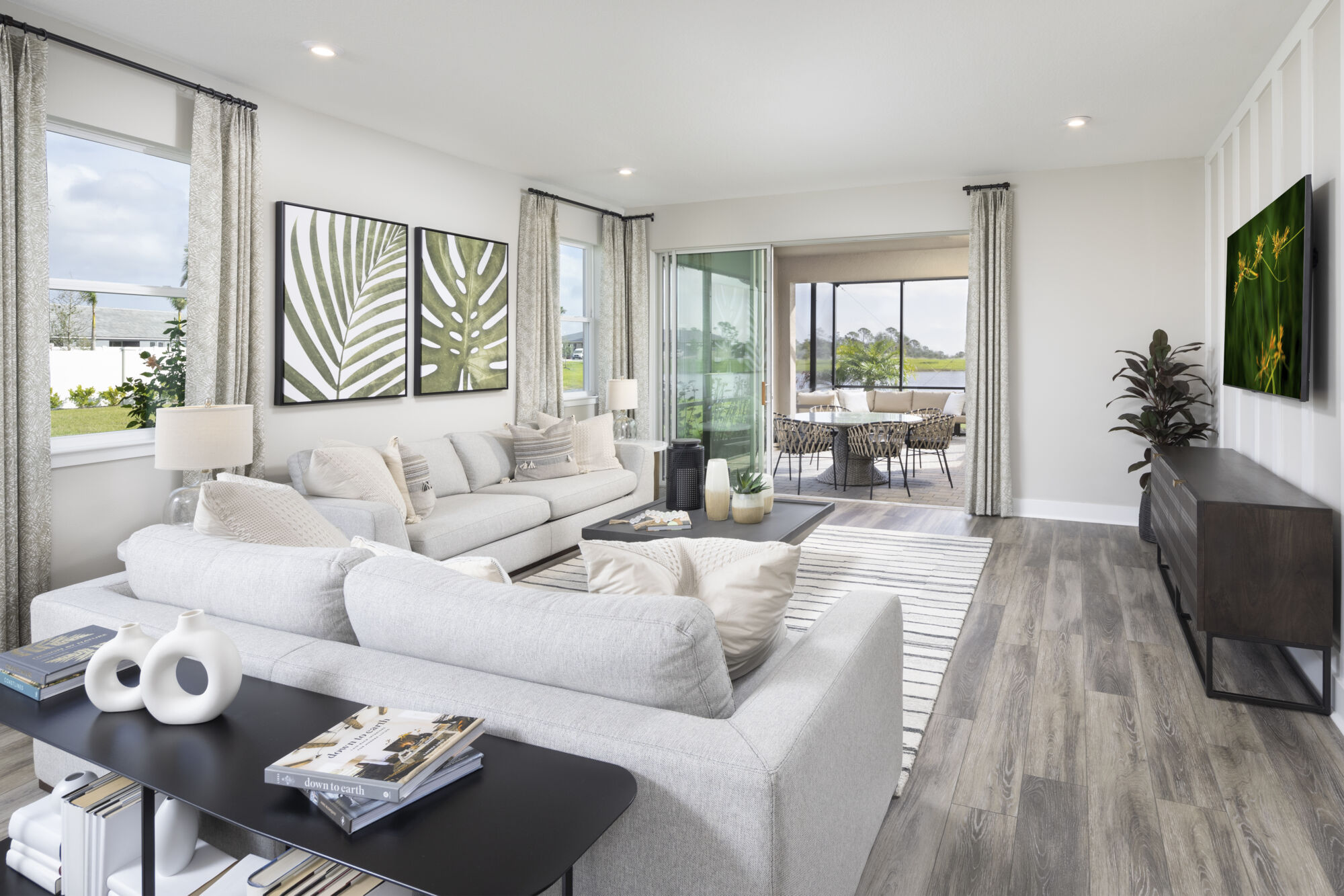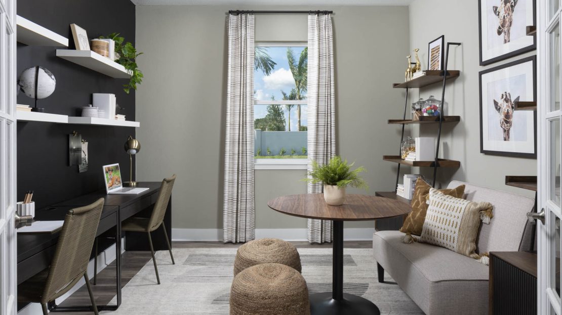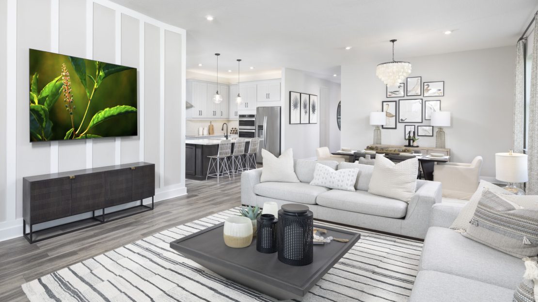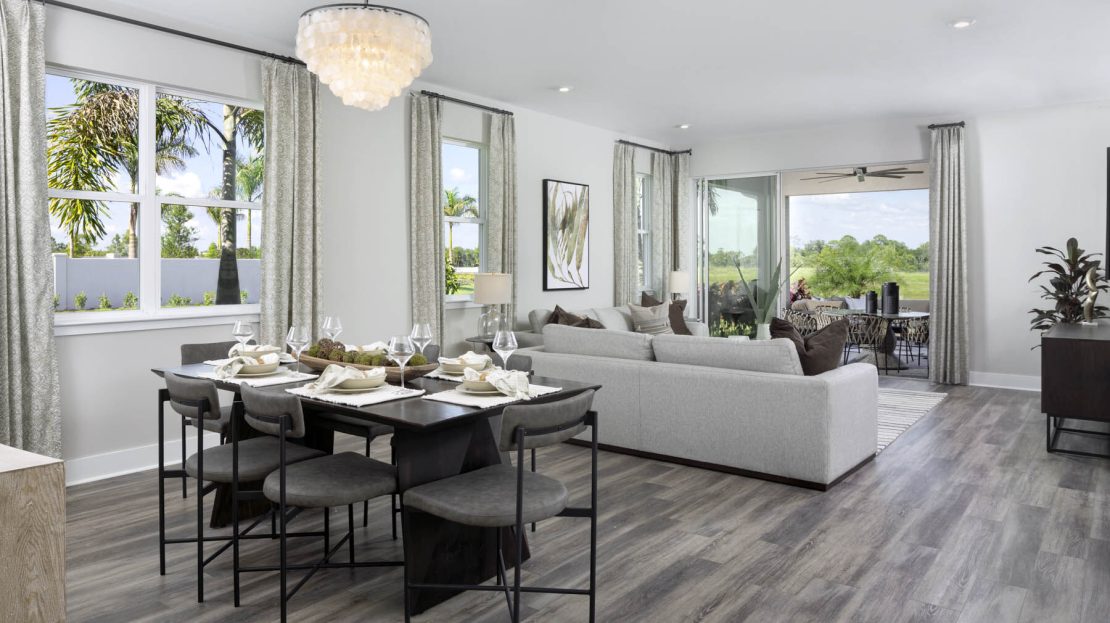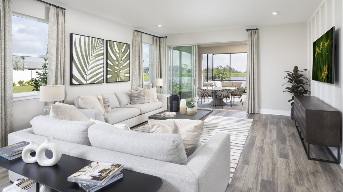 Masterful use of space, light and layout make the 2,373 sq. ft. Pinnacle the perfect one-story floorplan. The open-concept Great Room, dining area and kitchen with breakfast bar and pantry provide plenty of living space, with a lanai offering even more room outdoors. Beyond the kitchen are bedrooms 2 and 3 and the owner’s suite, offer a large walk-in closet and private bath. With easy access from the front porch, foyer or garage, a fourth bedroom with its own bath offer an ideal guest suite. Meanwhile, the flex room is good for remote work, study or hobbies.