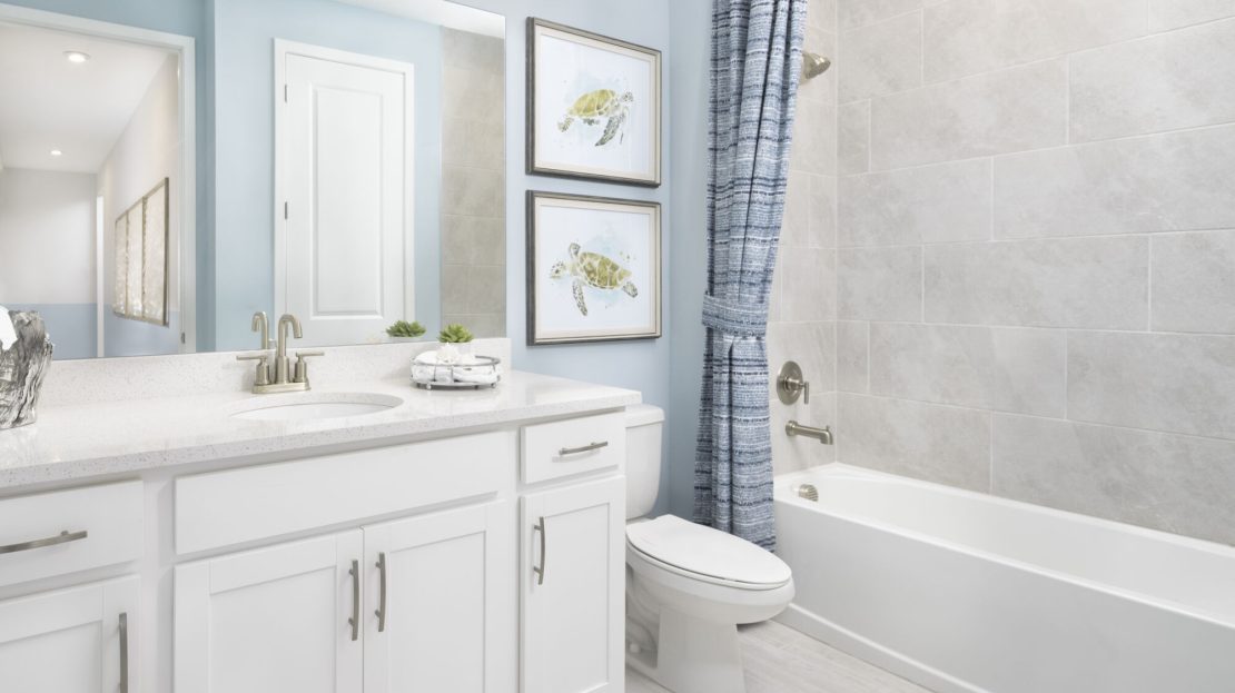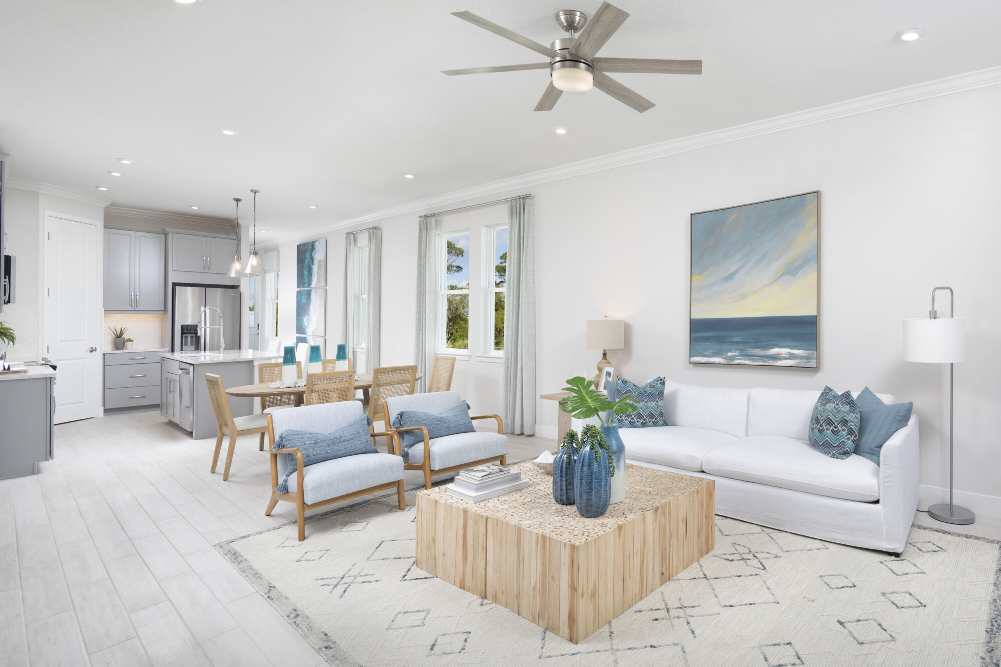 The 1,908 sq. ft. Seabranch floorplan offers vast, usable space in a thoughtfully arranged design. The porch and foyer lead to a large kitchen with breakfast island that connects seamlessly with the dining room and Great Room. The adjacent lanai offers a handy outdoor extension of this large living space, and the flex room gives you even more space to work with. The owner’s suite offers self-contained luxury, with a private bath and walk-in closet — while bedrooms 2 and 3 share full bath.