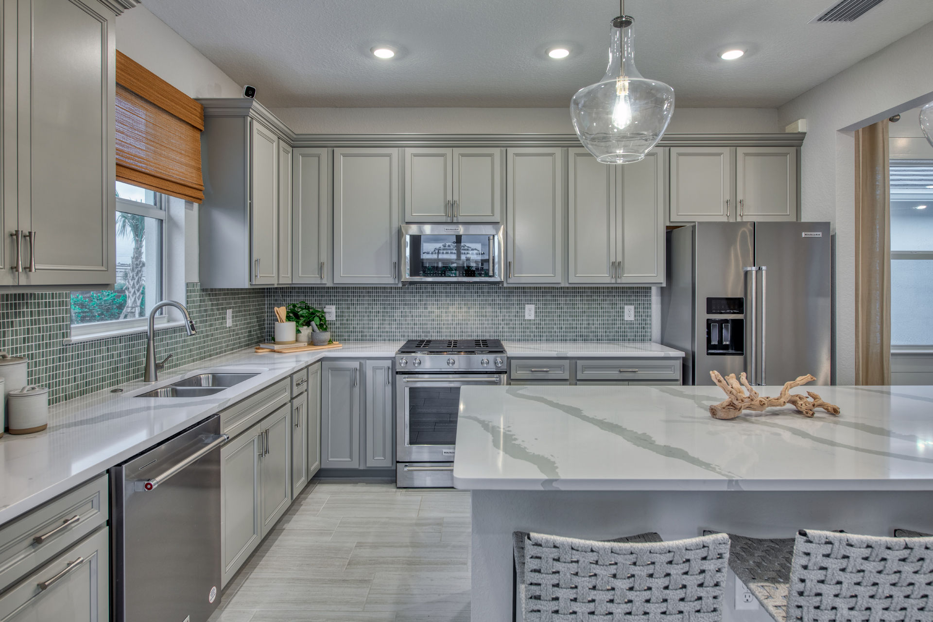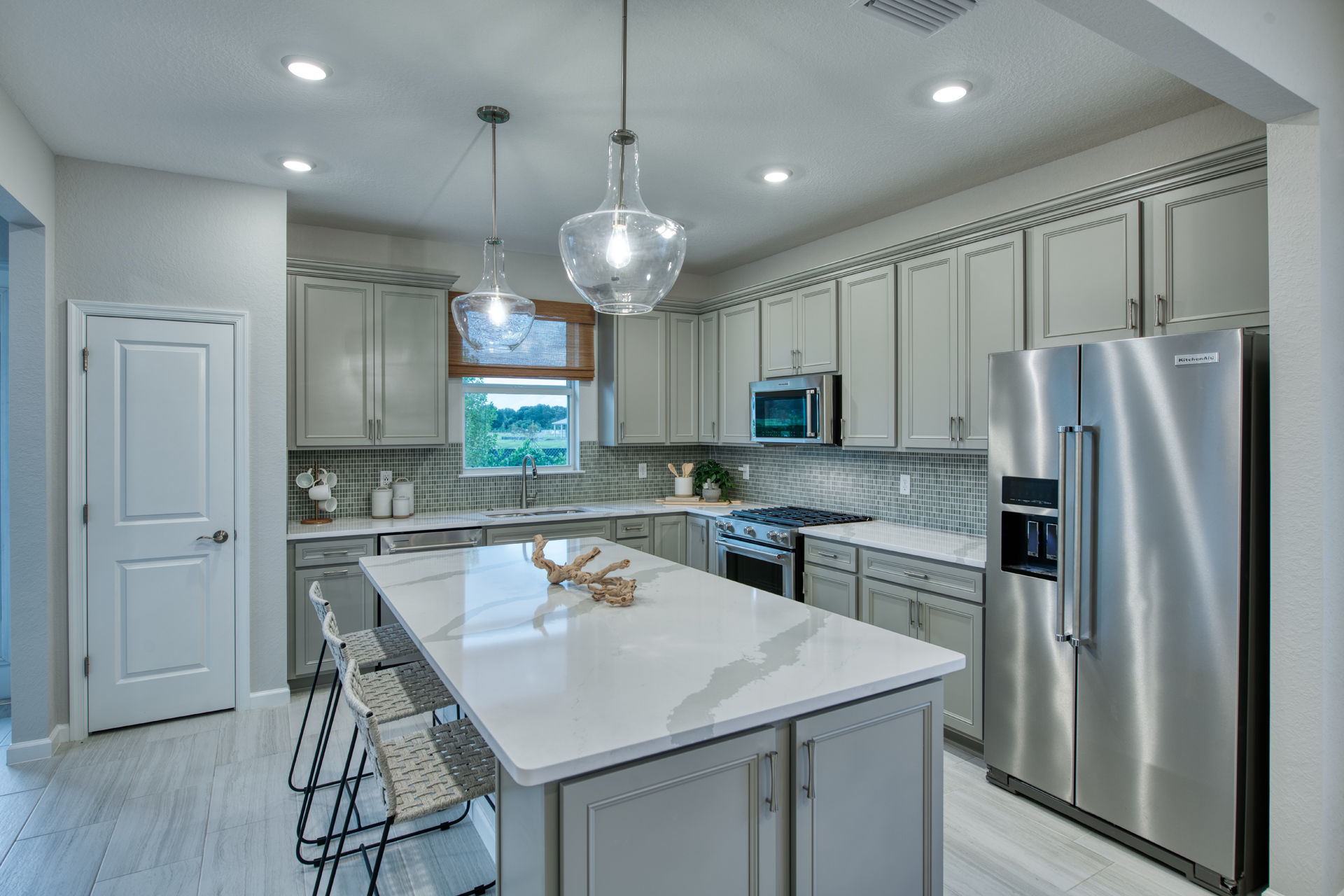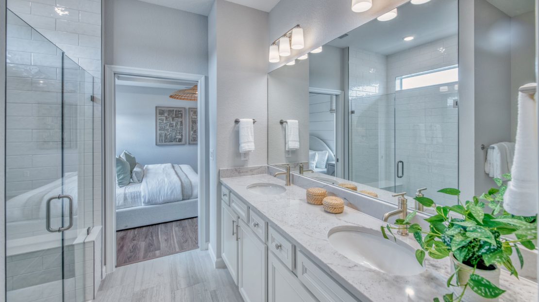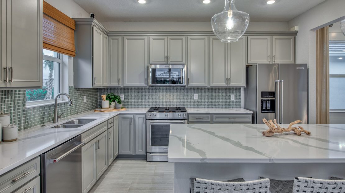 The Compass new construction home features an open layout from the foyer to the kitchen, keeping family and friends connected. Beautiful cabinetry and a large center island compliment the kitchen, while the connected café space makes dining a breeze. Add a sunroom off of the kitchen to enjoy Florida’s beautiful sunshine year-round.