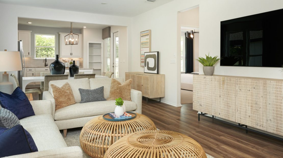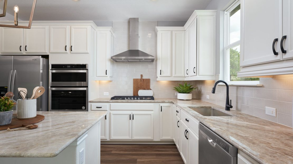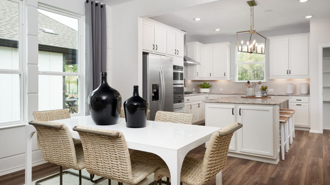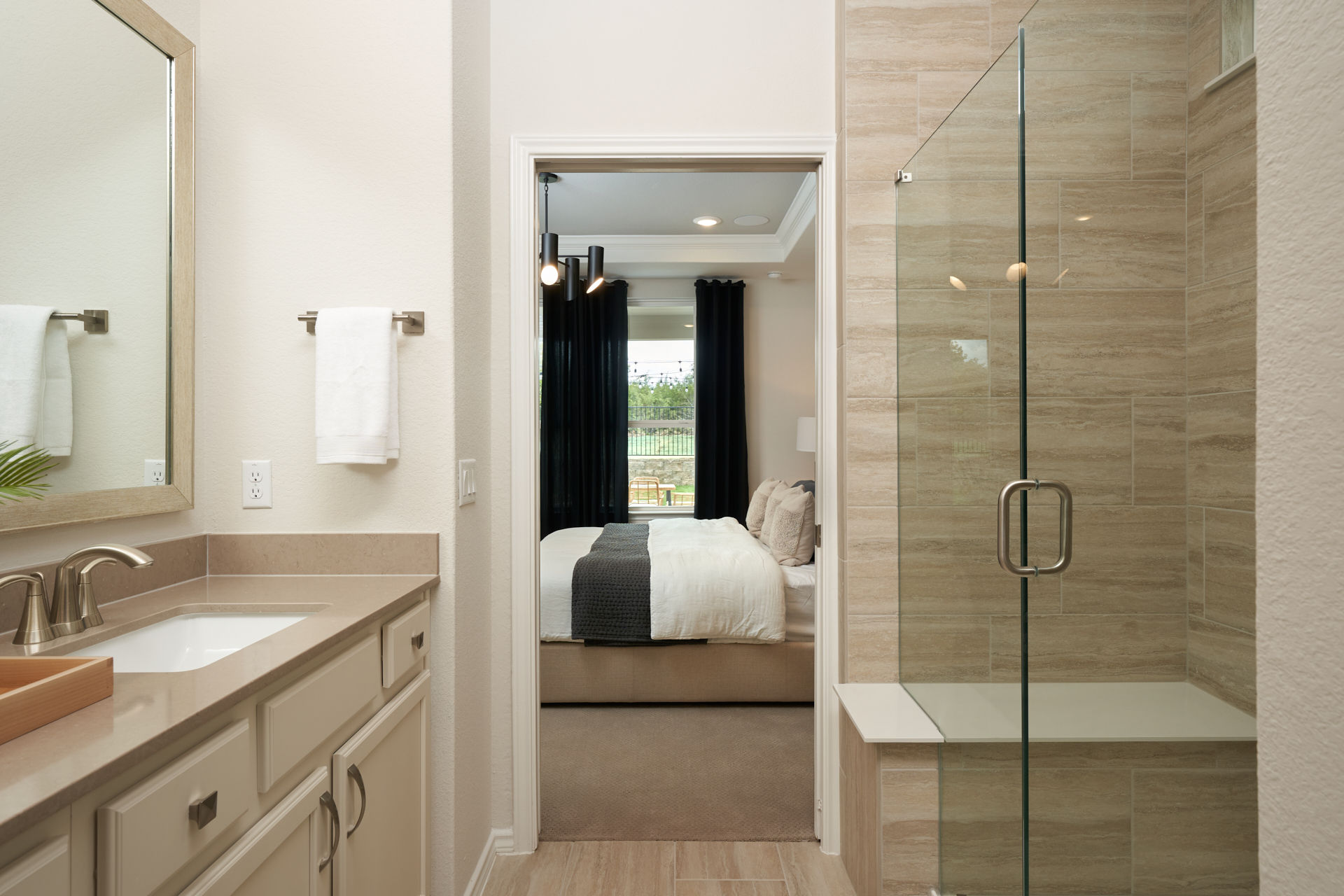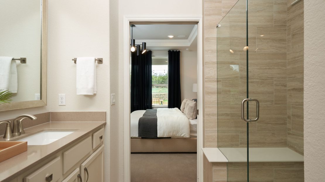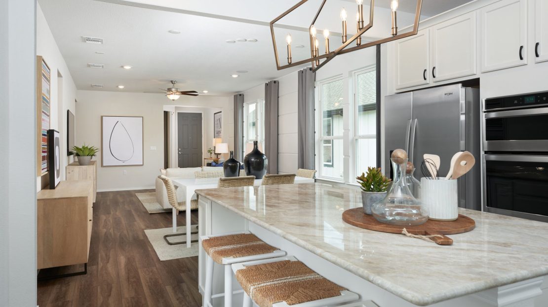 The Compass new construction home features an open layout from the foyer to the kitchen, keeping family and friends connected. Beautiful cabinetry and a large center island compliment the kitchen, while the connected café space makes dining a breeze. Add a sunroom off of the kitchen to enjoy Florida’s beautiful weather year-round.