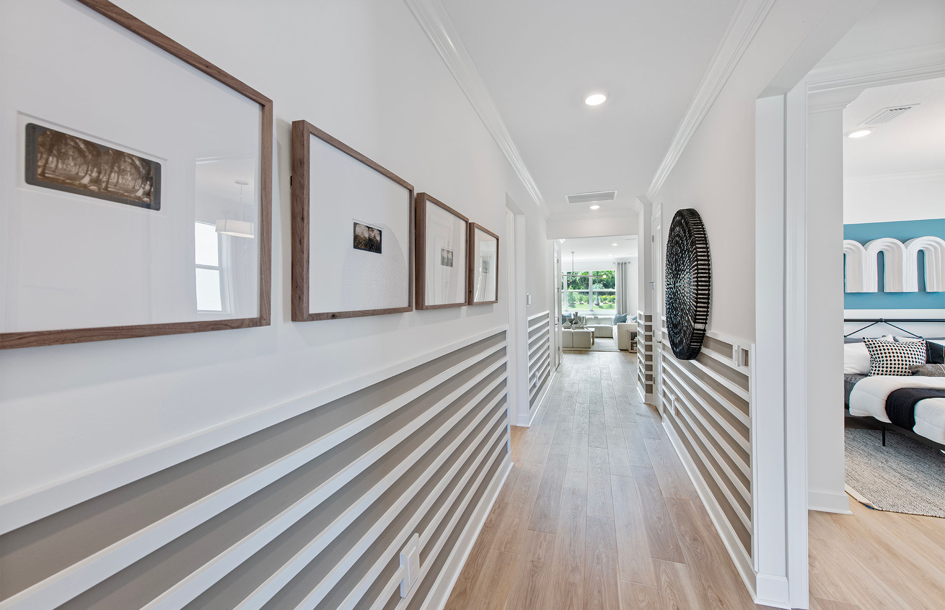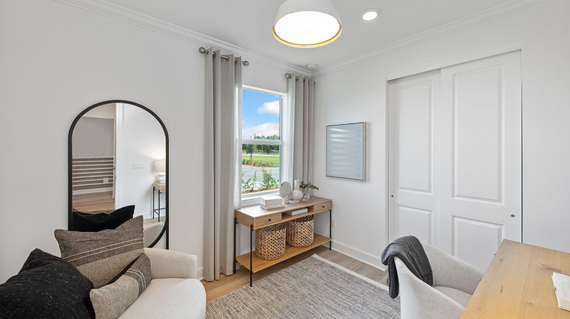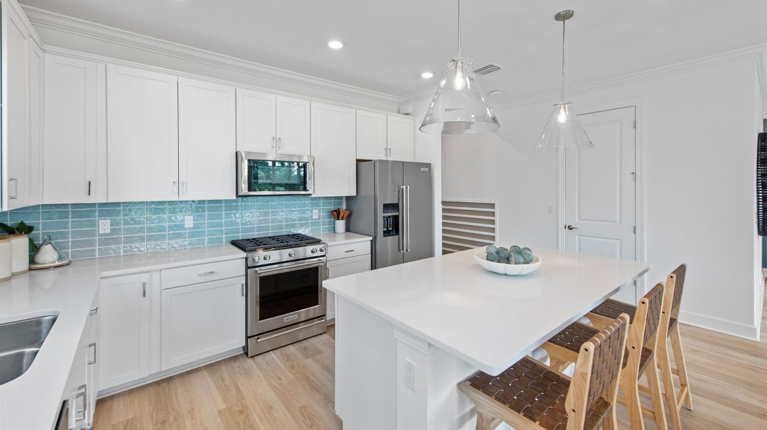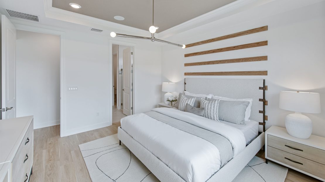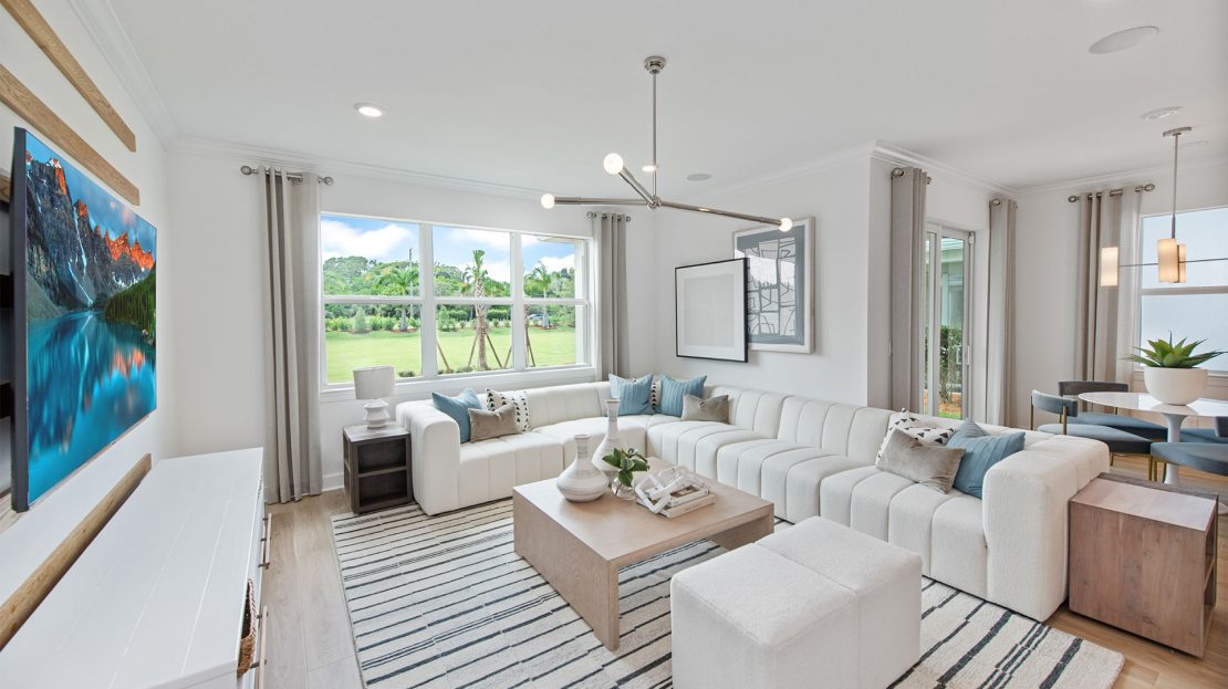 Leading off the foyer are three secondary bedrooms and designated laundry space in the new construction Highgate home. The foyer opens up to the gourmet kitchen, connected café, and spacious gathering room. Unwind in the private owner’s suite with a tranquil bathroom and walk-in closet or find your retreat on the optional extended covered lanai.