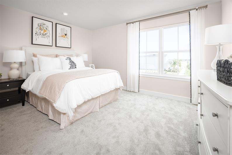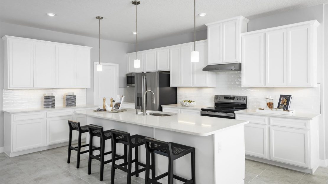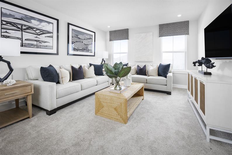 Welcome to the Serena, where convenience meets comfort across two thoughtfully designed stories. This clever home puts the owner’s suite right where you want it – on the main level – while keeping three additional bedrooms tucked away upstairs. The heart of the home shines with 9’4 ceilings and an open layout that makes the kitchen, dining, and family areas feel like one gorgeous space. Speaking of the kitchen, it boasts a 10’6” island that’s ready for everything from breakfast rushes to holiday cookie baking. Upgrades like a wall oven and beverage center can turn this space into your culinary dream. Upstairs holds a special surprise – a bedroom that can become a second owner’s suite – hello, multi-generational living! The adaptable loft space is ready for whatever your family throws at it – from movie marathons to homework sessions. With walk-in closets in every bedroom and smart storage solutions throughout, the Serena keeps clutter at bay. Best of all, the wall of windows and sliding glass doors leading to your patio (or optional lanai) bring the outdoors in, making every day feel a bit more like vacation.