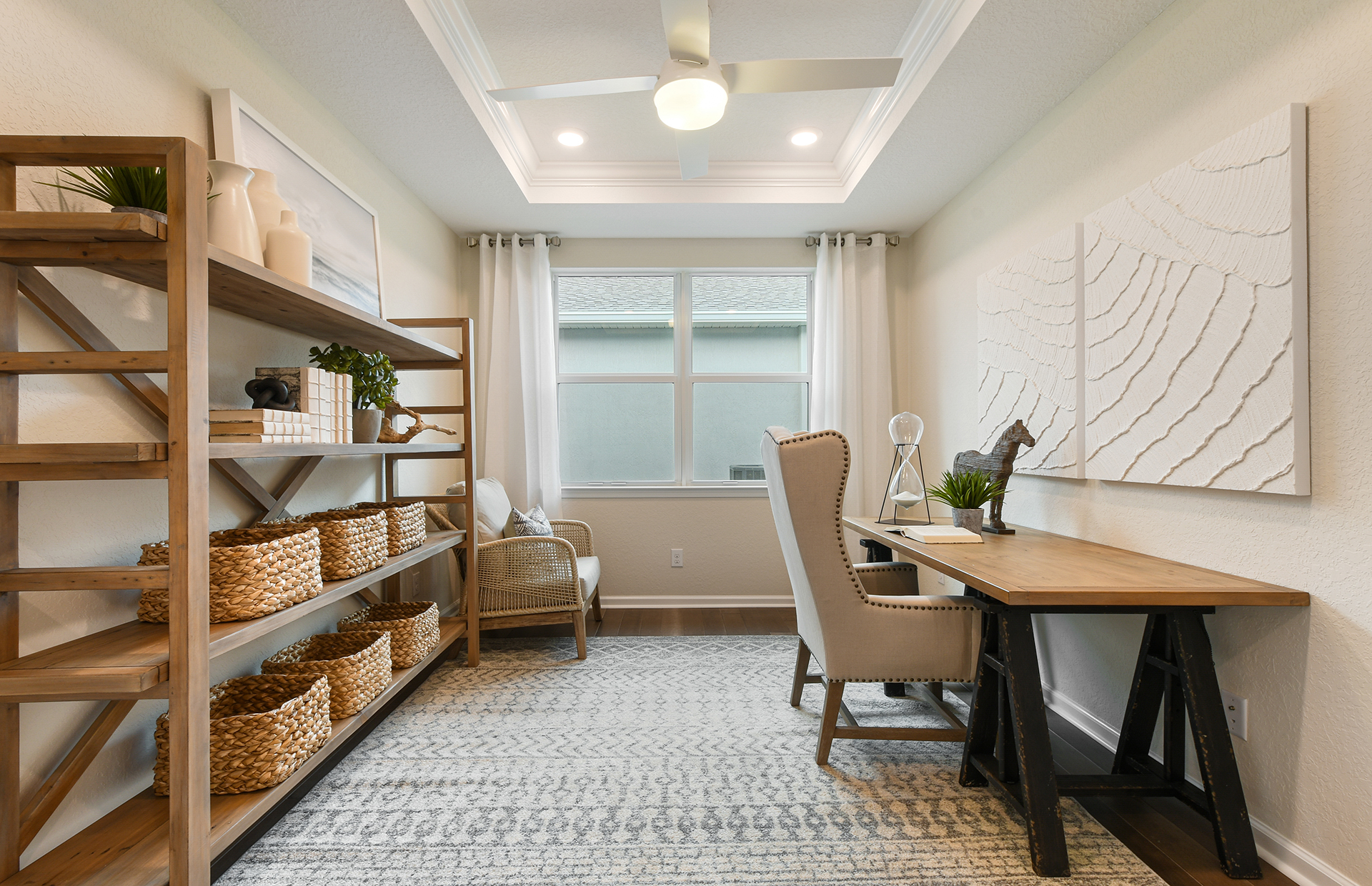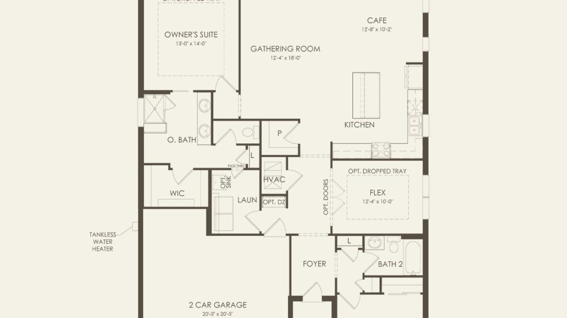Prosperity’s new home design features an open living space filled with natural light. The spacious gathering room flows seamlessly into the kitchen, which boasts stylish stainless steel appliances making this space both elegant and functional. A flex room off the foyer could be an office, den, or additional bedroom.