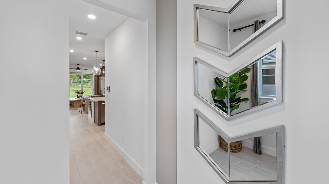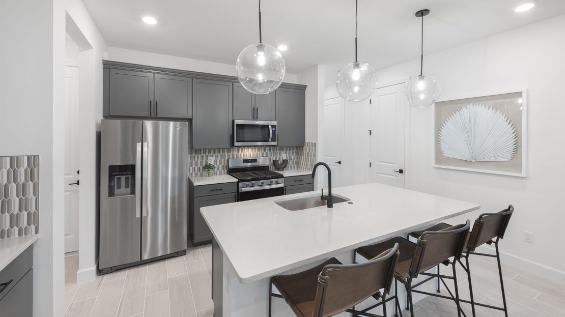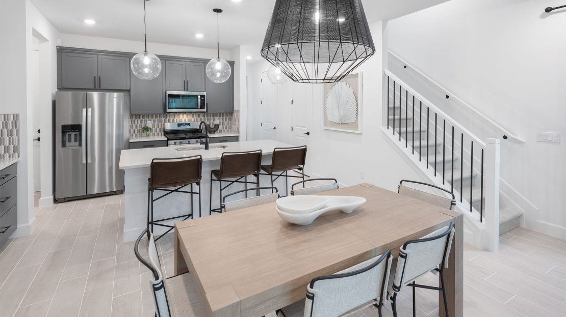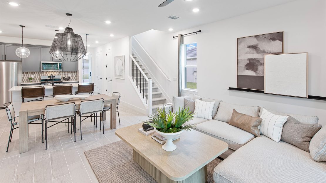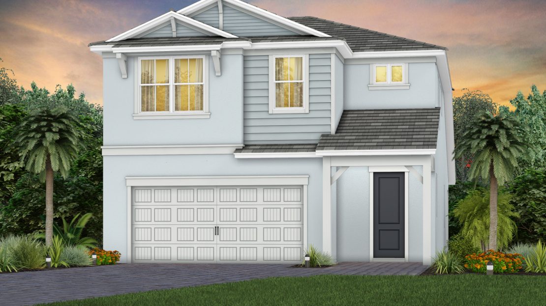 Walk into the new construction Seaport home with a formal foyer that leads to a connected kitchen, café, and gathering room. Extend your covered lanai to upgrade your indoor-outdoor entertainment experience. This floor plan maximizes its space with a private downstairs owner’s suite and two additional upstairs bedrooms with huge walk-in closets.