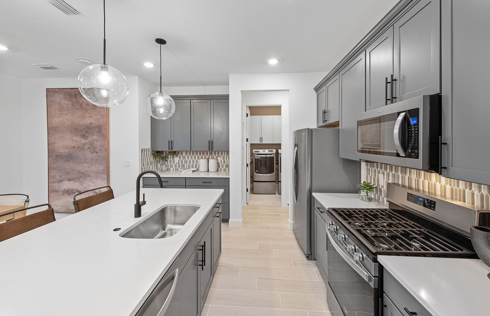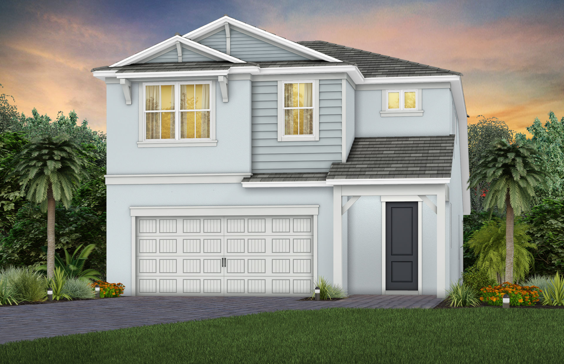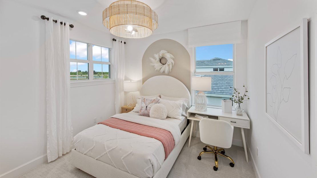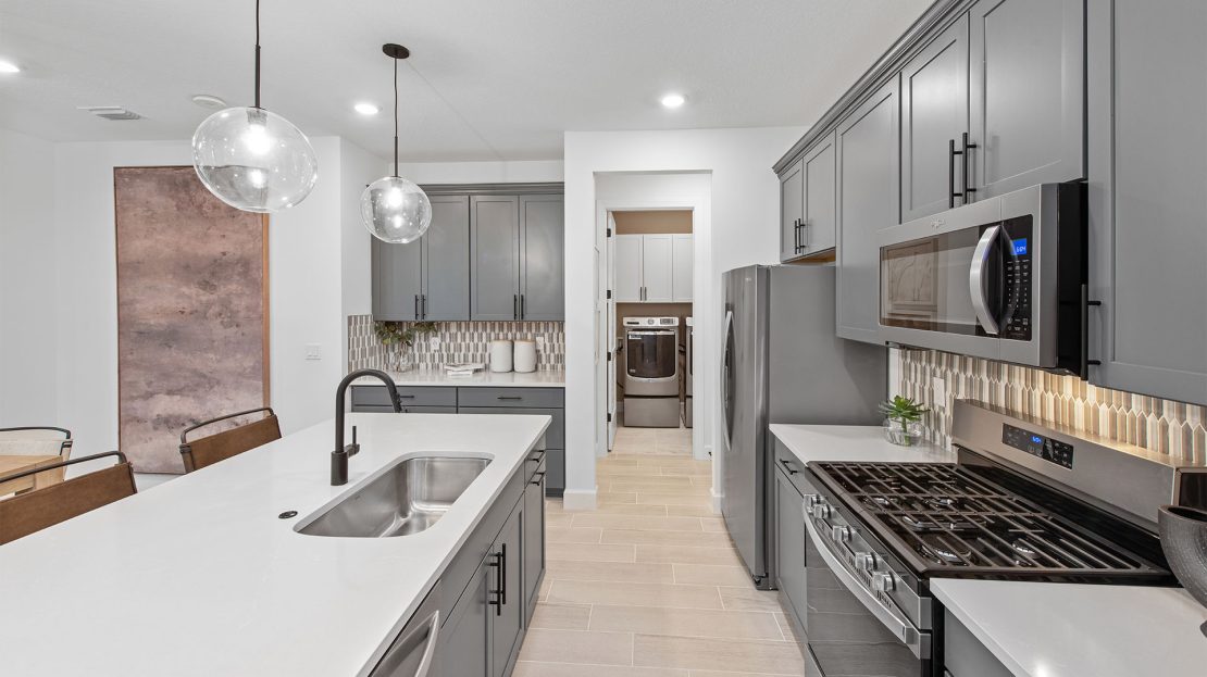 Walk into the new construction Seaport home with a formal foyer that leads to a connected kitchen, café, and gathering room. Extend your covered lanai to upgrade your indoor-outdoor entertainment experience. This floor plan maximizes its space with a private downstairs owner’s suite and two additional upstairs bedrooms with huge walk-in closets.
