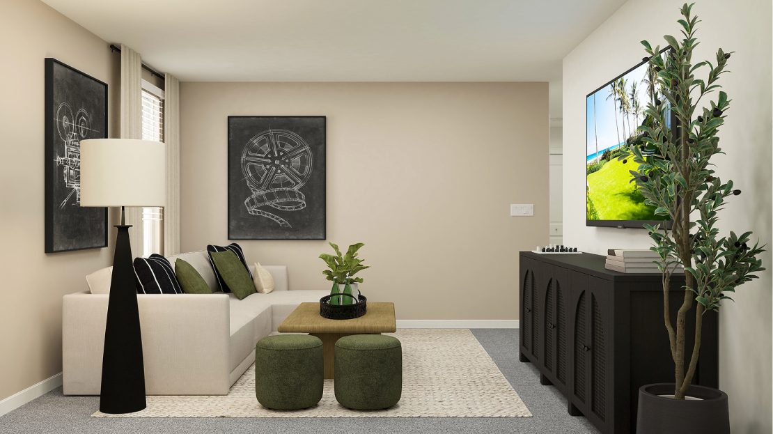This two-story home divides space for optimal tranquility. The first floor showcases an open design that encompasses the dining room, kitchen and living room for simplified family living and entertaining. Nearby, the owner’s suite is separate from the upstairs bedrooms and features a private bathroom. The second level hosts four additional bedrooms and a versatile loft.