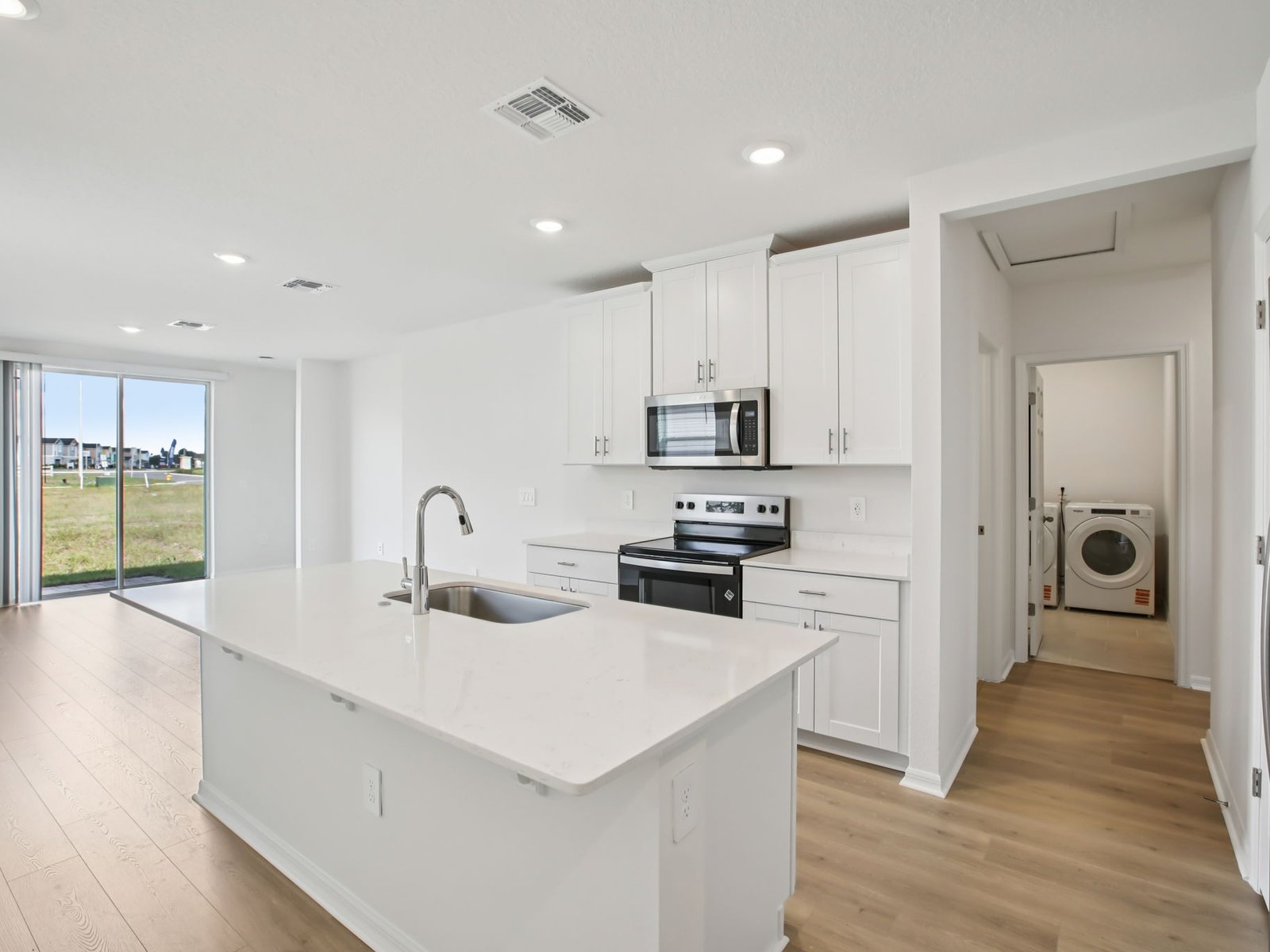 Prepare dinner while catching up on the day’s events from this home’s chef-inspired kitchen which overlooks a great room.