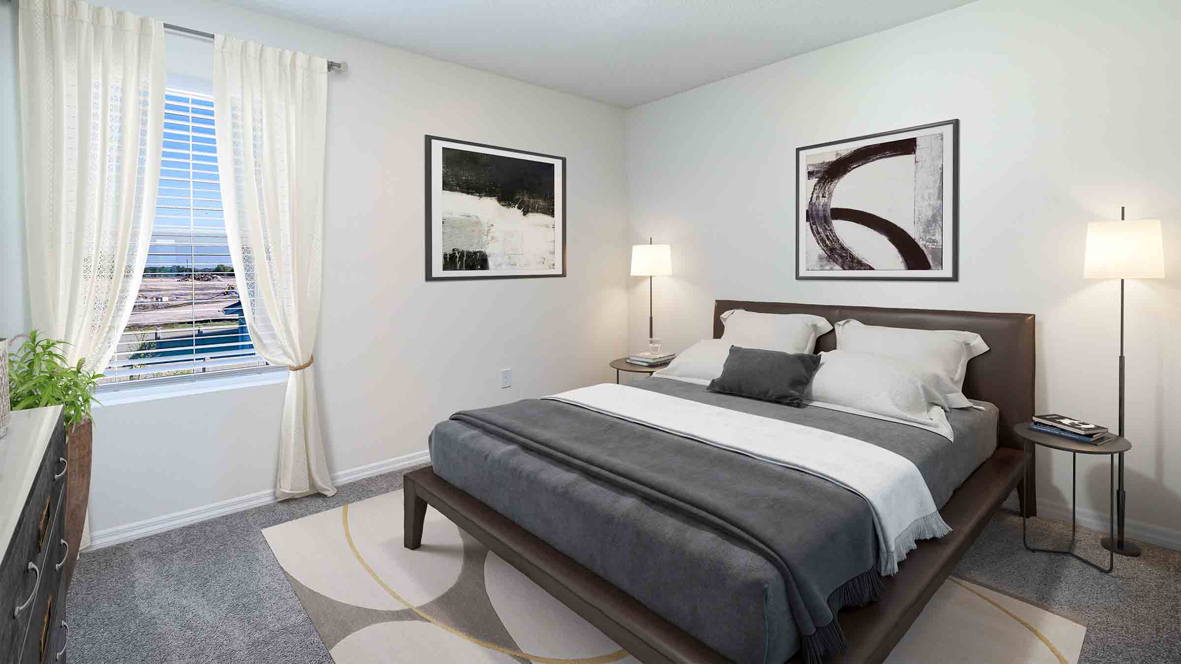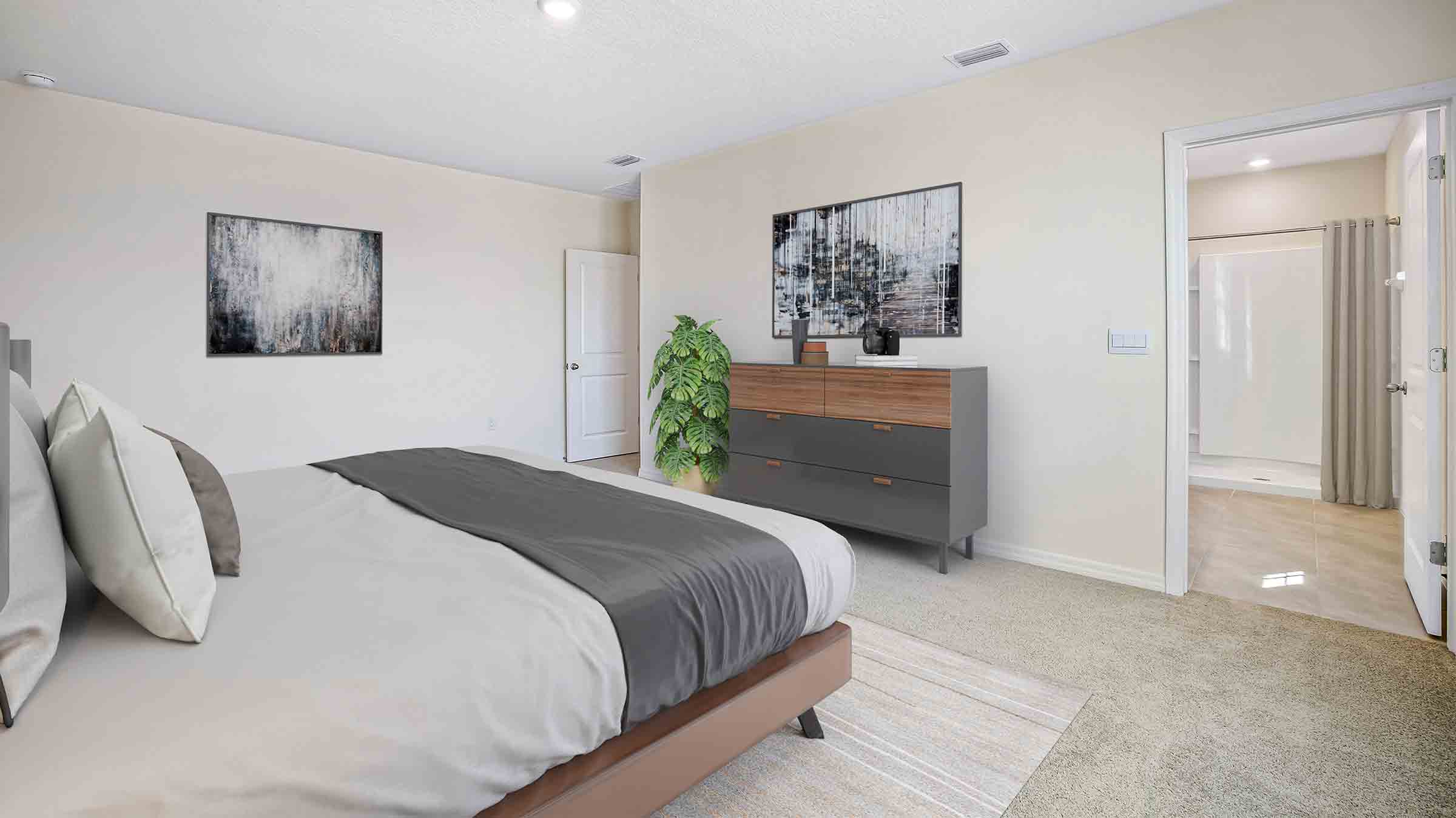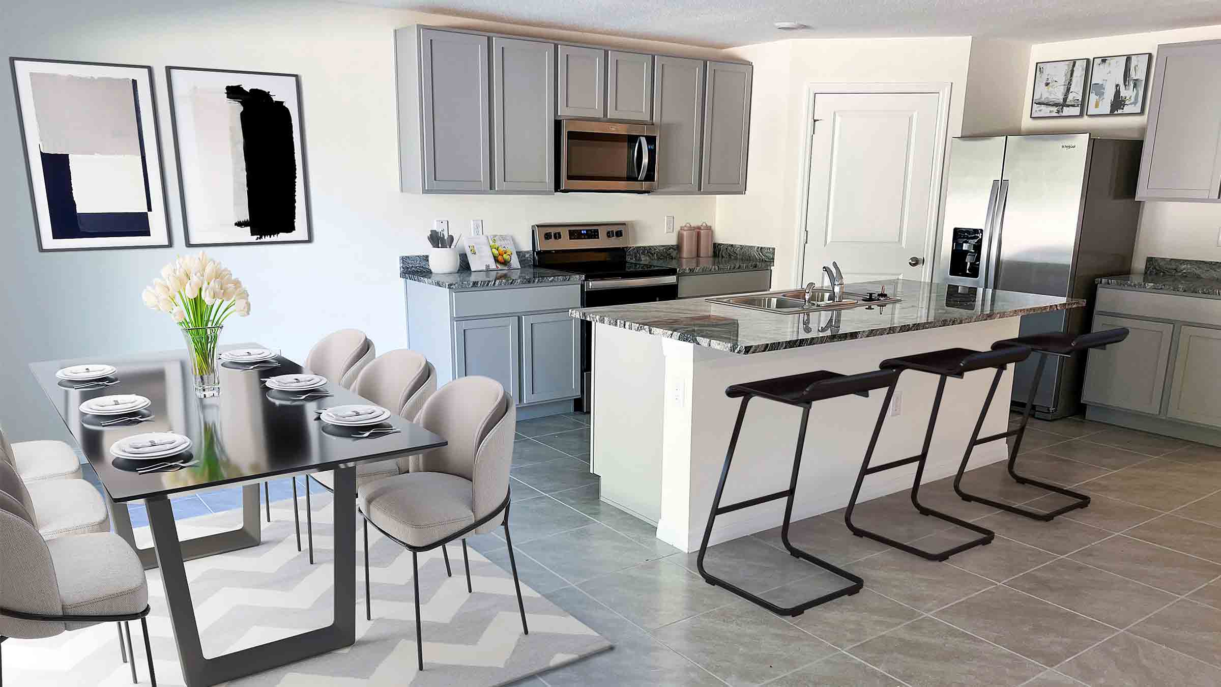 This two-story concrete-block-constructed home features an open concept first-floor living space with a guest bedroom on the first floor. The stairs to the second story land in a spacious bonus room fit to serve as an additional entertainment space, a playroom, or an office. Bedroom 1 includes an ensuite bath with a roomy walk-in closet. The laundry room is perfectly situated between the other two bedrooms next to the third bathroom. This home comes with a refrigerator, built-in dishwasher, electric range, microwave, washer, and dryer. Pictures, photographs, colors, features, and sizes are for illustration purposes only and will vary from the homes as built. Home and community information including pricing, included features, terms, availability and amenities are subject to change and prior sale at any time without notice or obligation. CBC039052.