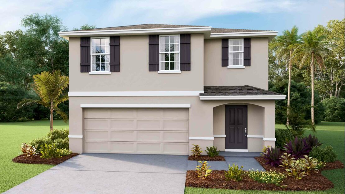 This all concrete block constructed, two-story plan has a large open-concept downstairs which includes a well-appointed kitchen, living and dining area which include extended tile, and a patio, perfect for enjoying the outdoor Florida breeze. Upstairs, the oversized Bedroom 1 can easily fit a king-size bed and includes a large walk-in closet as well as Bathroom 1 bathroom with double vanity. Three other bedrooms share a second upstairs bathroom while the loft provides an extra area for work or play. This home comes with a refrigerator, built-in dishwasher, electric range, and microwave as well as washer and dryer.