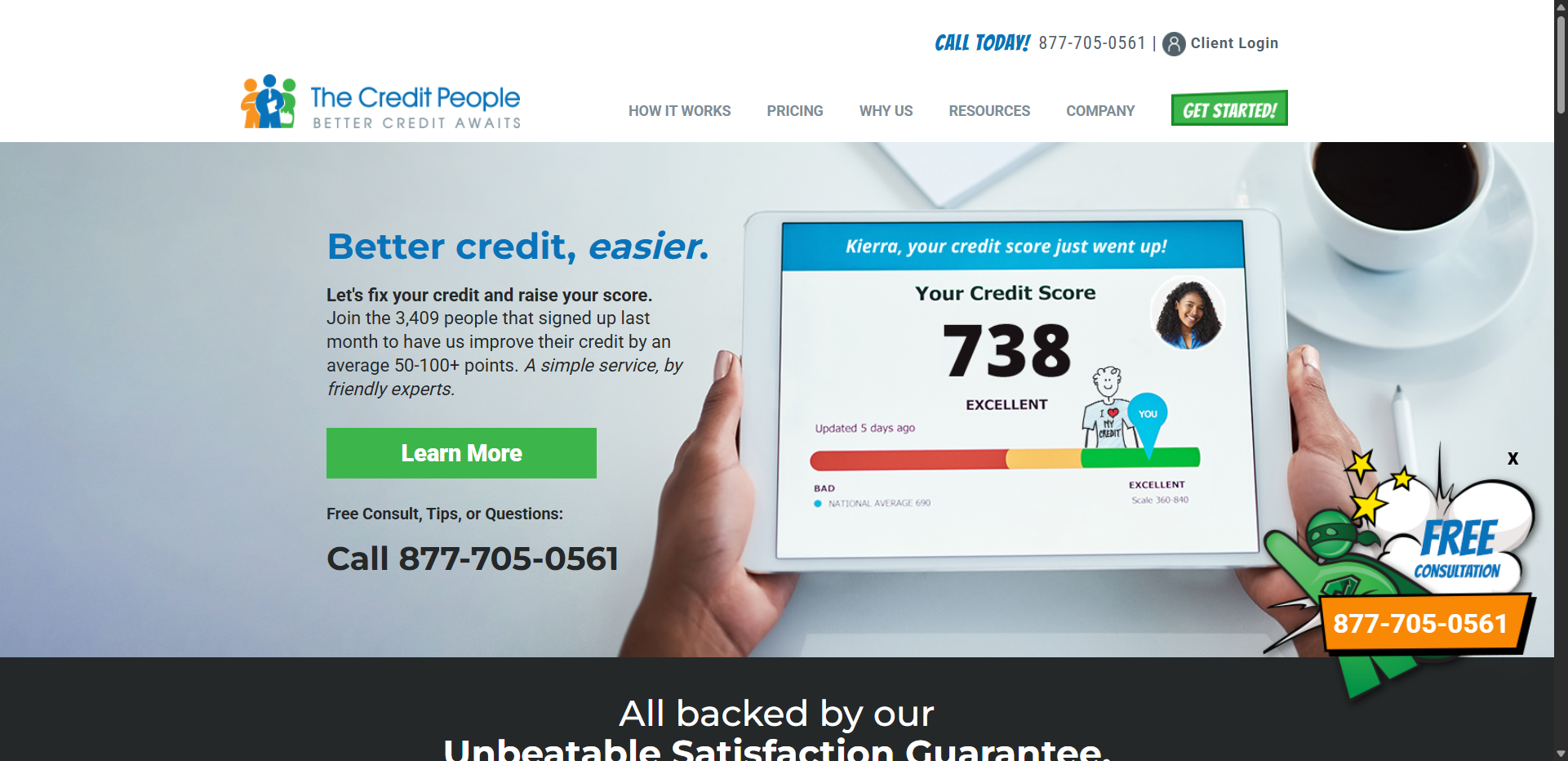 The Credit People offers an affordable credit repair service based on reviewing customers’ credit reports and seeing where there is room for improvement. Its credit repair agents can remove items that negatively affect their clients’ credit histories, thereby helping to improve their FICO Scores. The company promises to deliver positive results in less than 60 days. Its figures show that 78% of customers get approved for car loans, 71% get home loans, and 81% get approved for new credit.